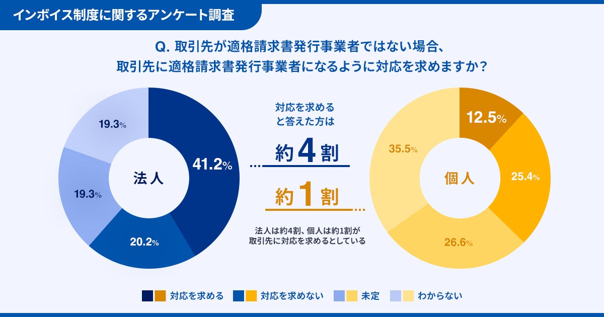 ・取引先に適格請求書発行事業者の登録を求めるケースは法人で4割