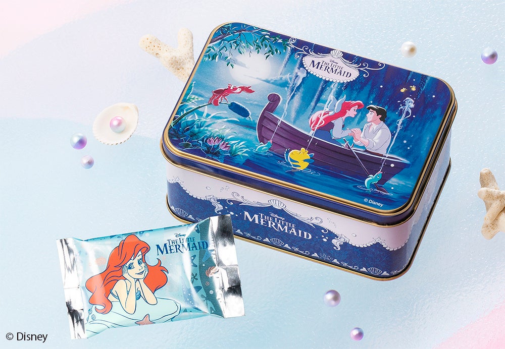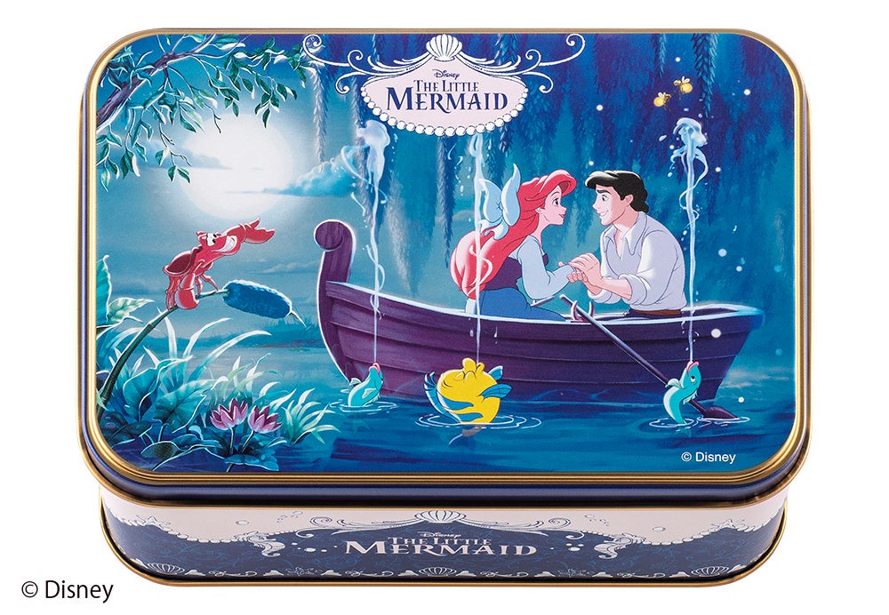 14枚入は、まるで「アリエル」の宝物入れのような ときめきをギュッと詰め込んだスペシャル缶。『キス・ザ・ガール』がテーマで、「アリエル」と「エリック王子」が見つめあうデザインに思わずうっとりしてしまいそう。中のお菓子を食べ終わったあとも「アリエル」のように大切な物を入れる宝物入れにしたり、おうちに飾ったり、いつもそばに置いておきたい可愛さです。プレゼントはもちろん、頑張る自分へのご褒美にもぴったり。