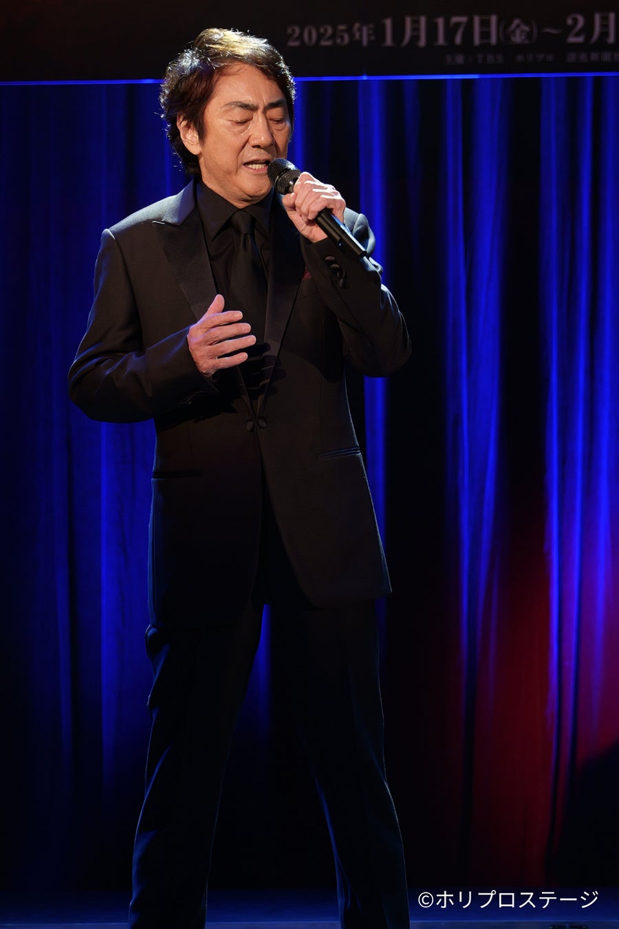 1曲目は作品の冒頭で歌われる10年の歳月の間、クリスティーヌとその歌に焦がれ続けている心情をファントムが訴える『ラブ・ネバー・ダイ』を代表する大ナンバー。ピアノの静かな前奏が響くなか市村が登場。「君が歌うまで音のない世界が続く」と語り掛けるような切々とした歌唱に、ファントムオリジナルキャストの貫禄がにじむ。