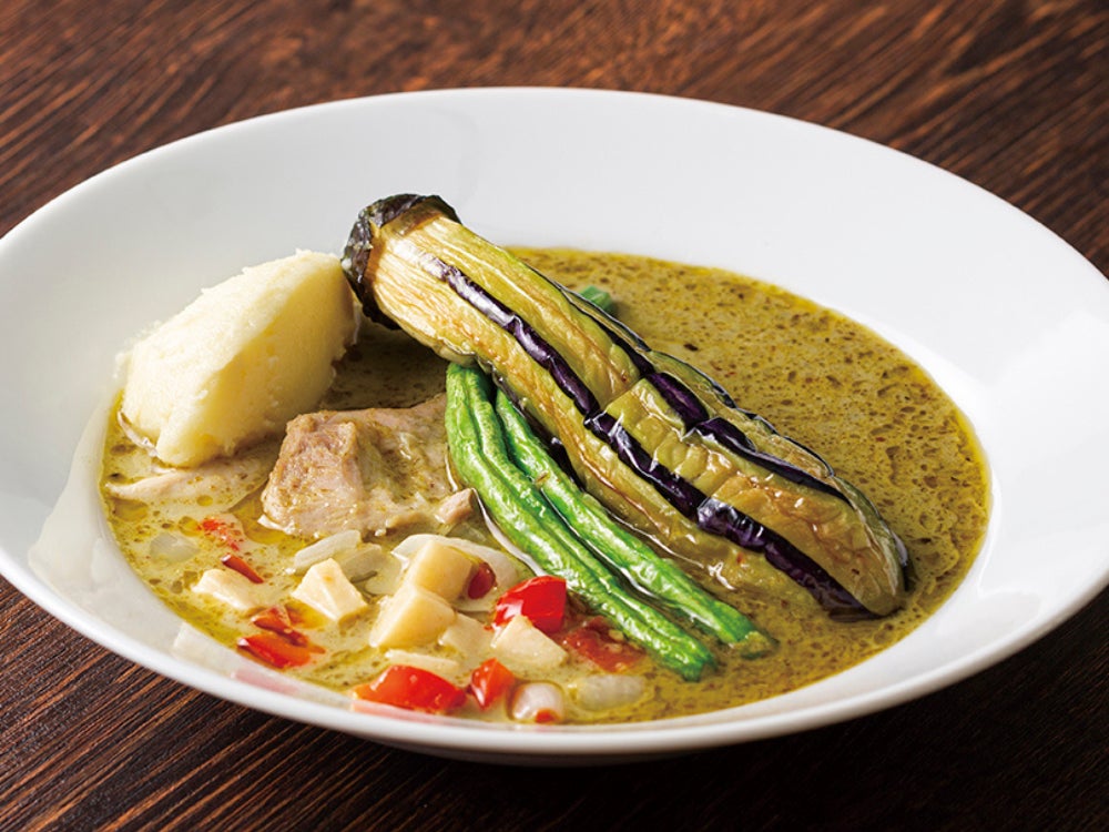 キリっとした刺激的な辛味とココナッツミルクの風味、ハーブの香りのバランスが絶妙なタイ定番の鶏肉とナスのグリーンカレー。マッシュポテトを混ぜると新しい味わいに。