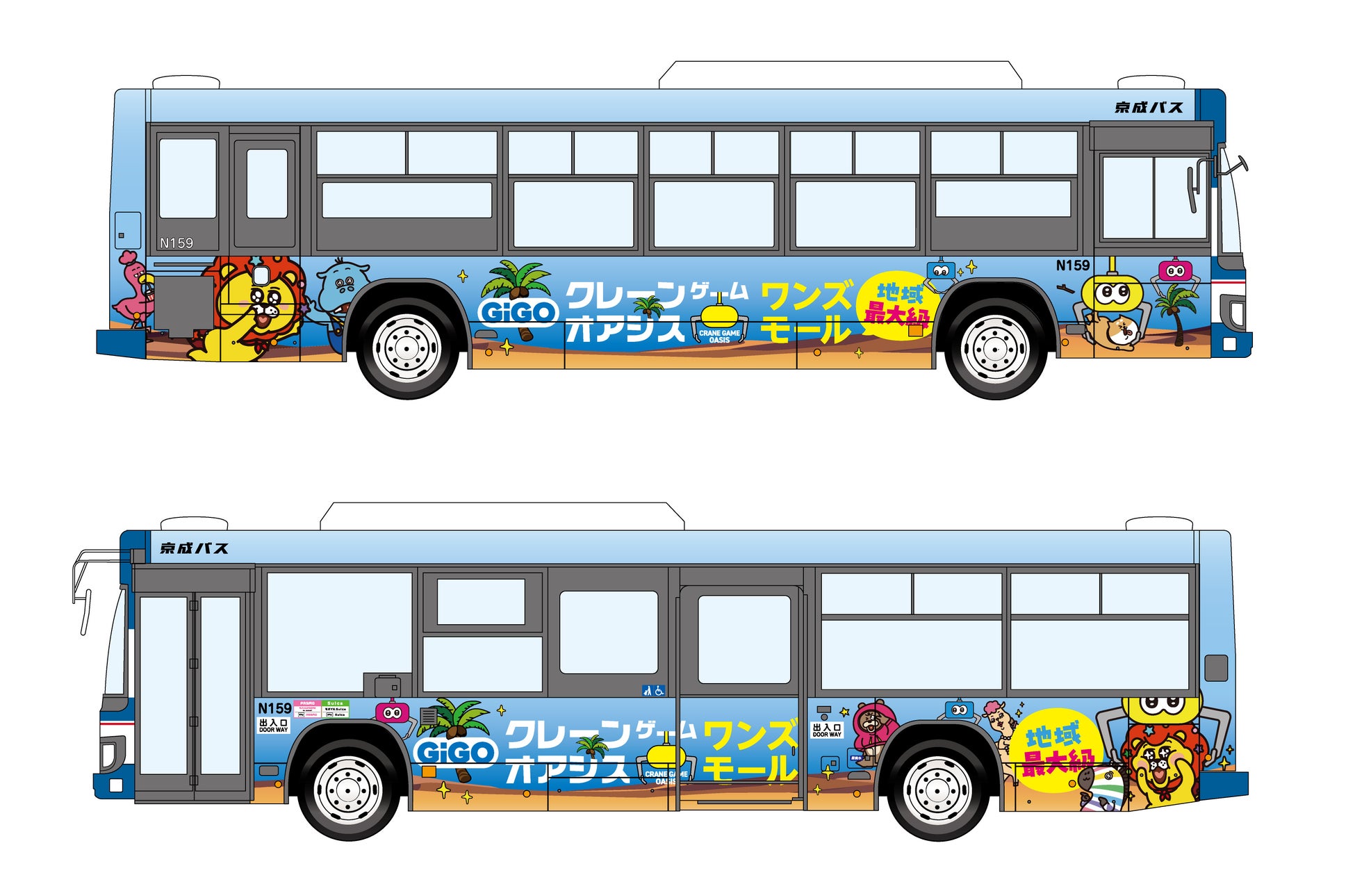 2025年11月から、京成バスに「GiGOクレーンゲームオアシス ワンズモール」デザインのラッピングバスが登場します。ご注目ください。