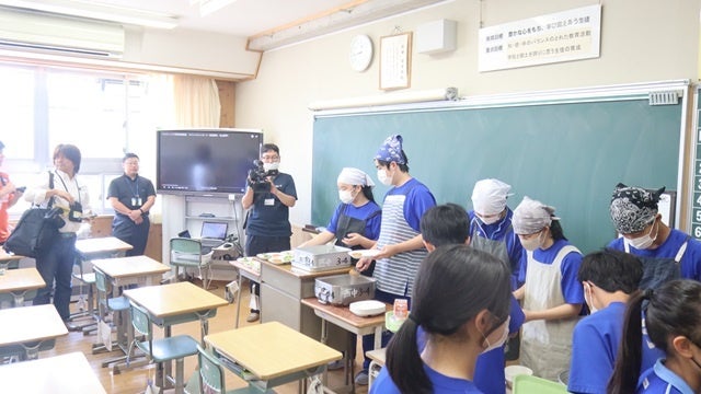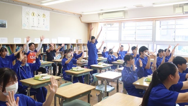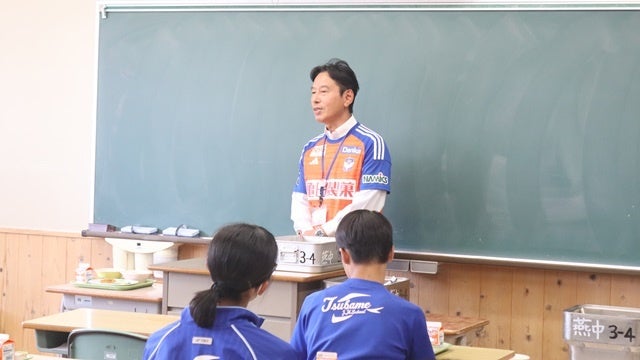 給食を食べ終わった生徒からは、「チキンライスが一番おいしかった」「アルビを応援したくなった」という声が聞かれました。今も市内のクラブチームでサッカーに打ち込んでいる生徒は、石山選手の小・中学校の後輩にあたるそうで、「すごく身近に感じるし、応援したくなります。もっと活躍してほしい」と先輩にエールを送っていました。