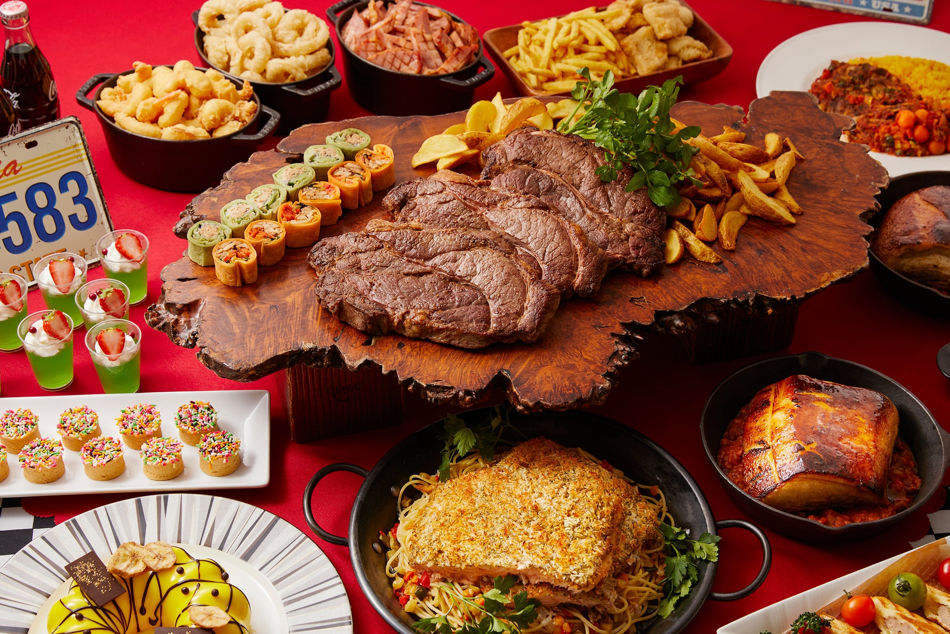 ■ステーキやタコスバーなど、古き良きアメリカを堪能するダイナミックなメニューを心ゆくまで