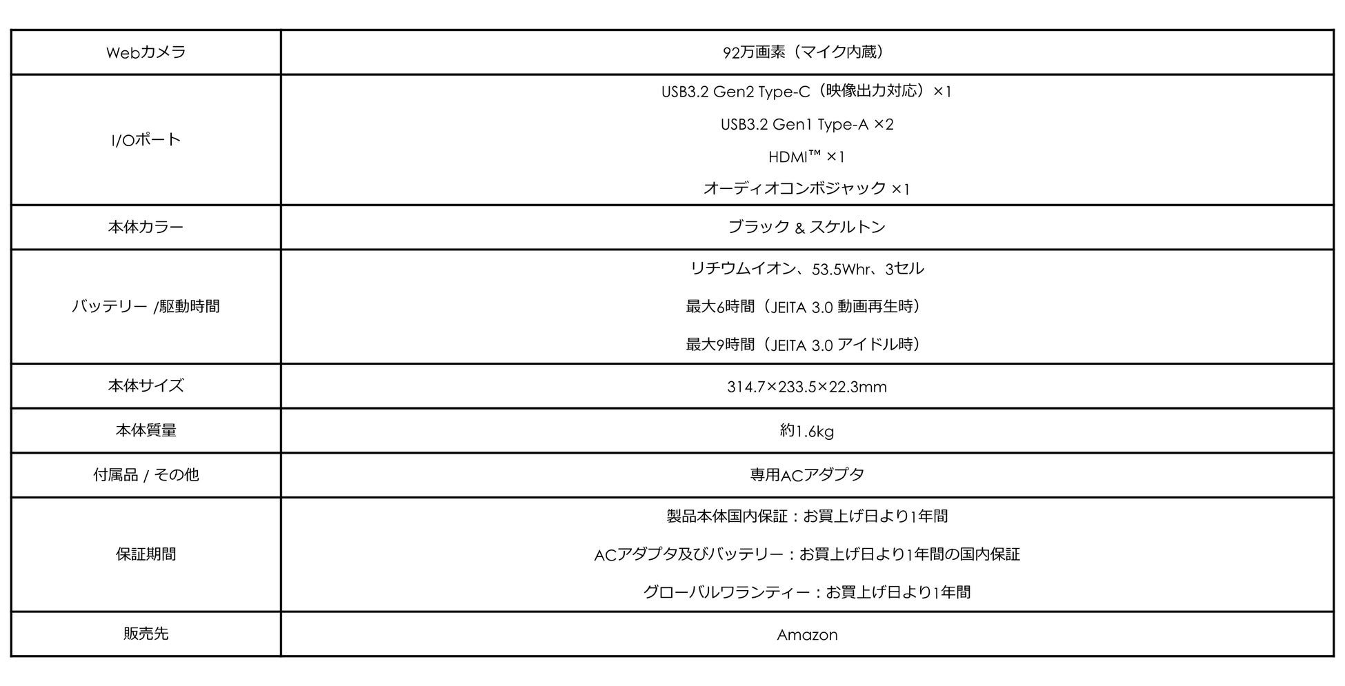 本体デザインの大きな特徴として、ディスプレイ側面や本体底面にスケルトンカバーを採用するほか、WASDや方向キーなどにスケルトンキートップを搭載し、他には無い独特な個性を放ちます。本体は薄さ22.9mm・軽さ1.98kgの薄型・軽量デザインとなっており、室内の移動やバックパックへ収納して外出先へ気軽に持ち運ぶことができます。