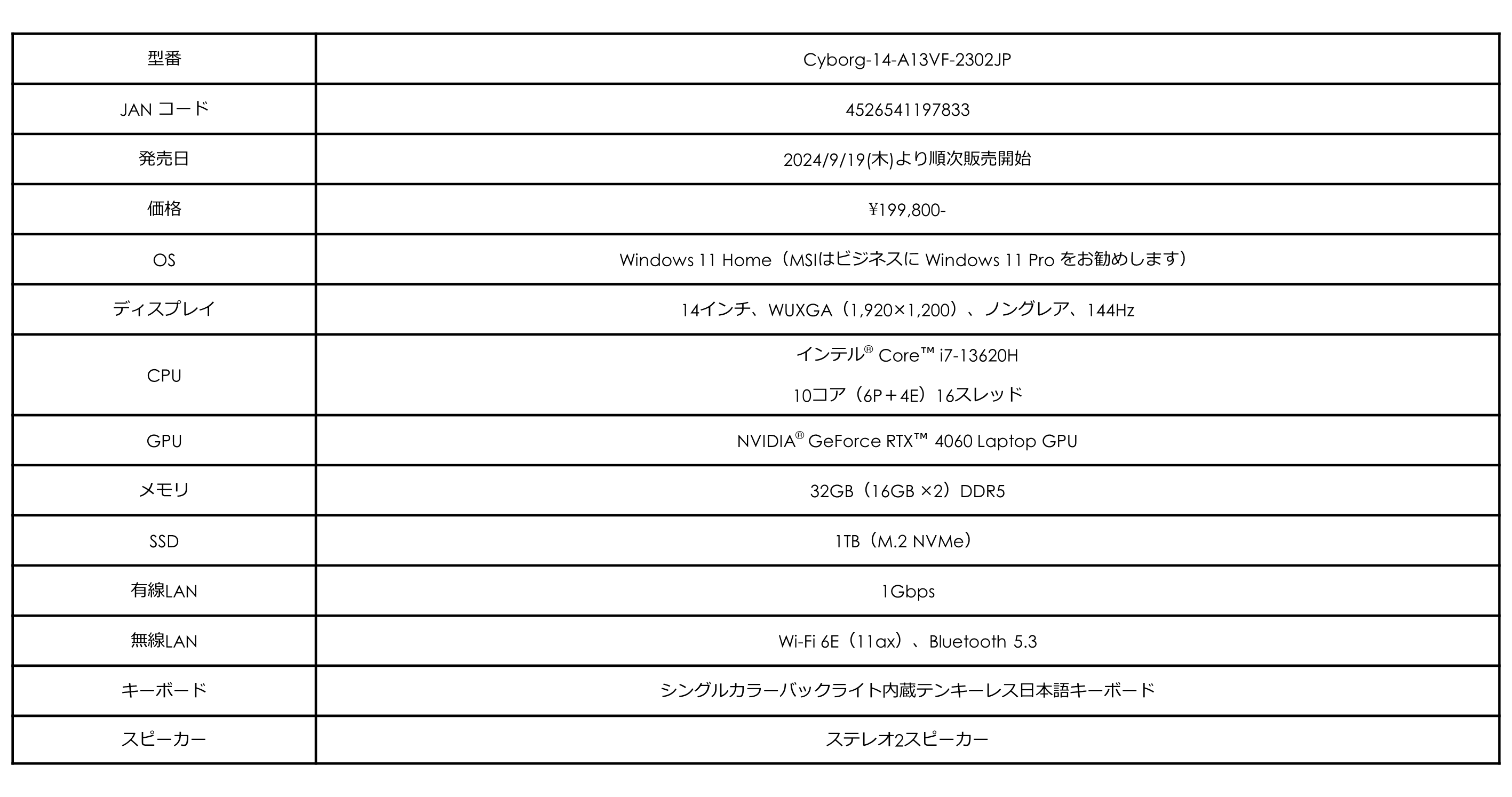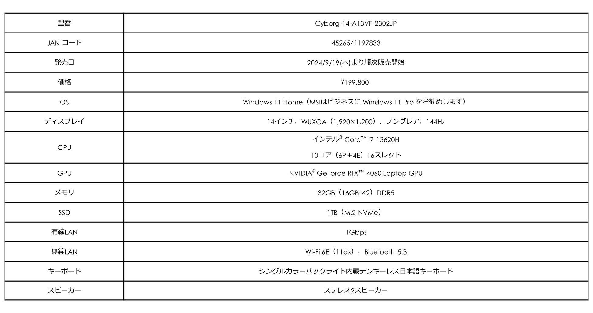 ・Cyborg 14 A13V シリーズ製品ページ:https://jp.msi.com/Laptop/Cyborg-14-A13VX