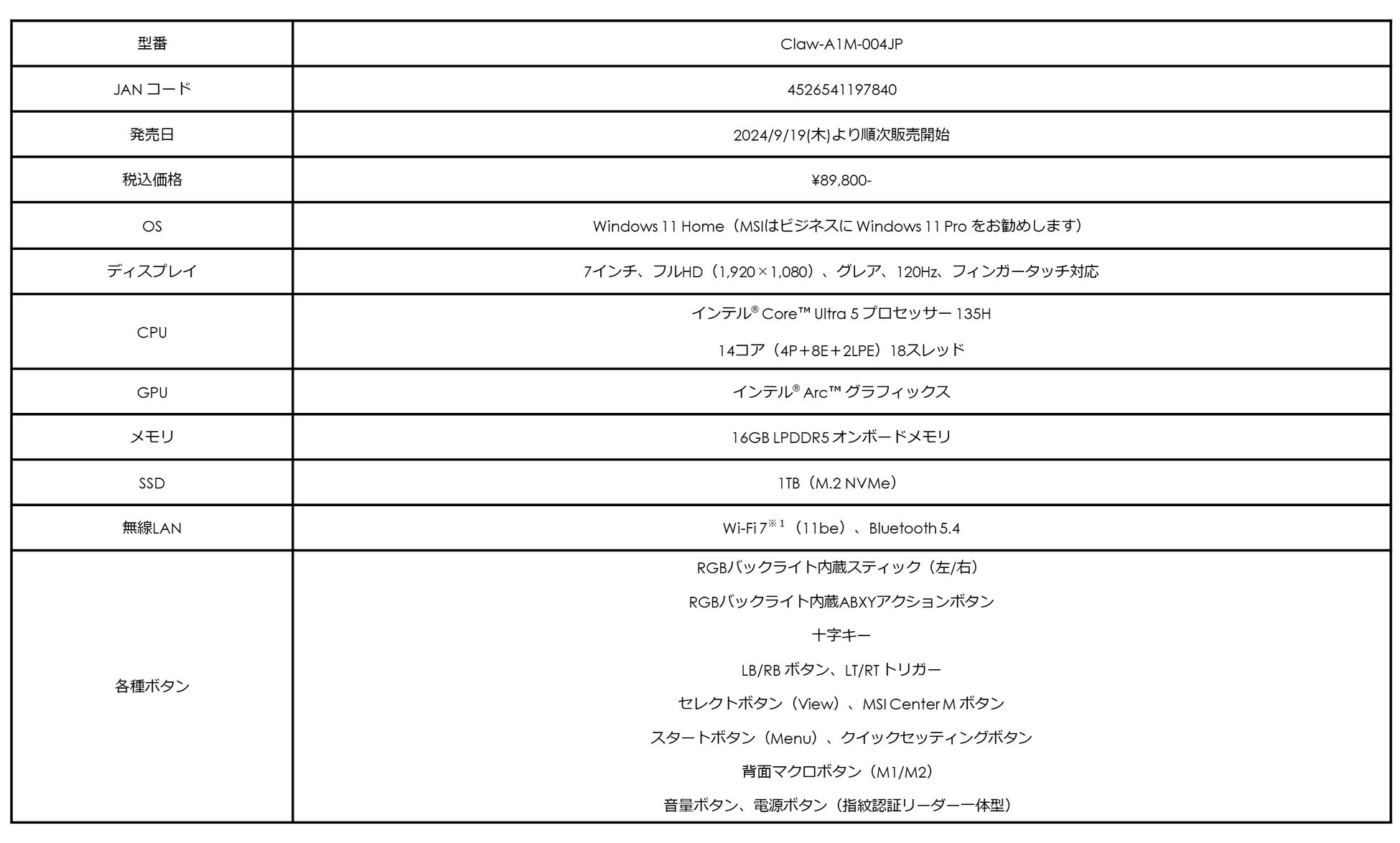 ・Claw A1Mシリーズ製品ページ:https://jp.msi.com/Handheld/Claw-A1MX