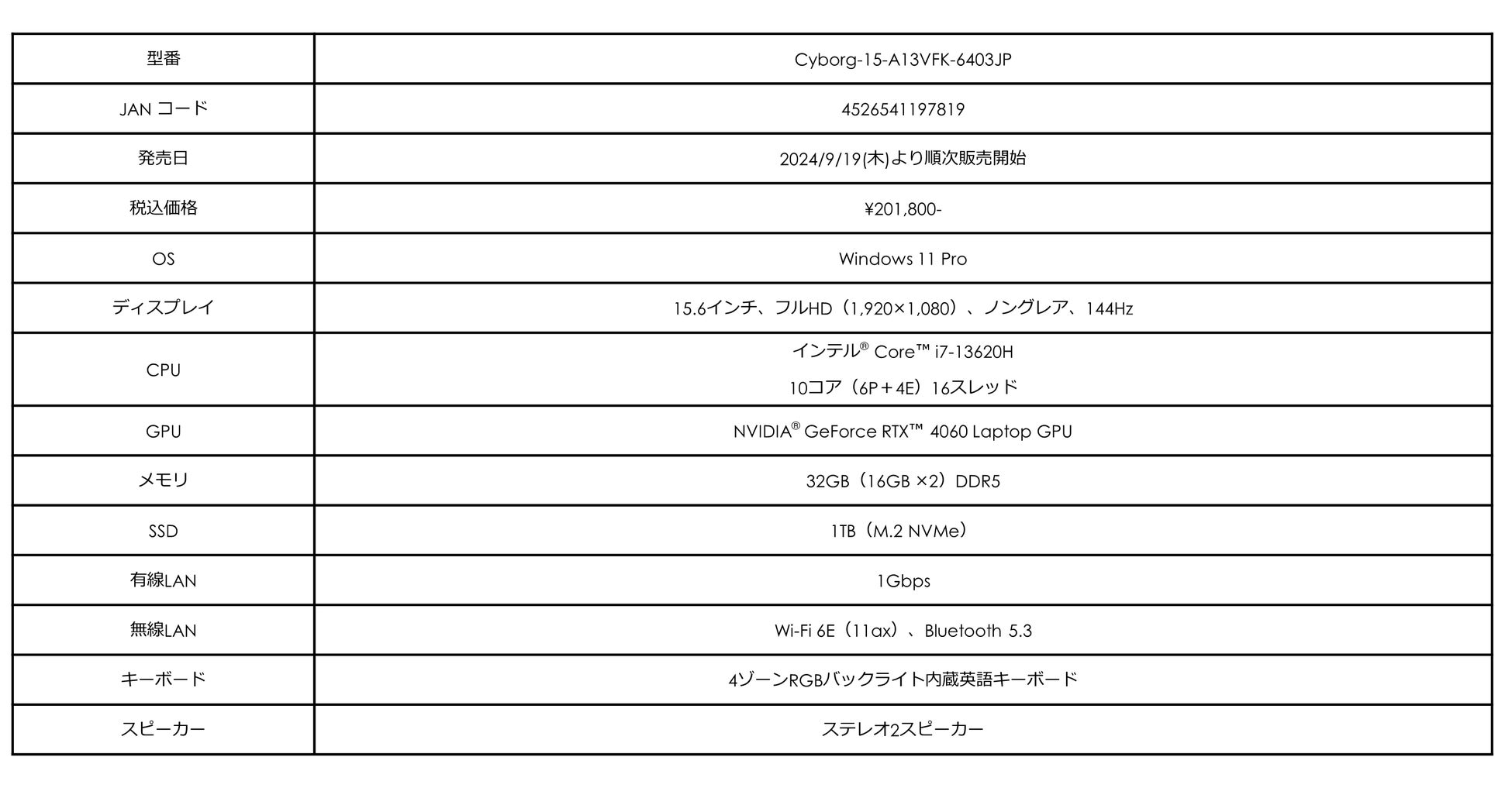 【Cyborg-15-A13VFK-6403JPの主な特徴】