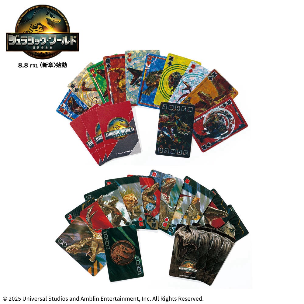 大人気シリーズ最新作の映画『ジュラシック・ワールド/復活の大地』より限定プライズが登場。迫力満点の恐竜たちがデザインされた「図鑑クッション」、キラキラとしたホログラムタイプと、メタリックタイプのかっこいい恐竜たちの「トランプ」の2アイテム全4種類を展開いたします。