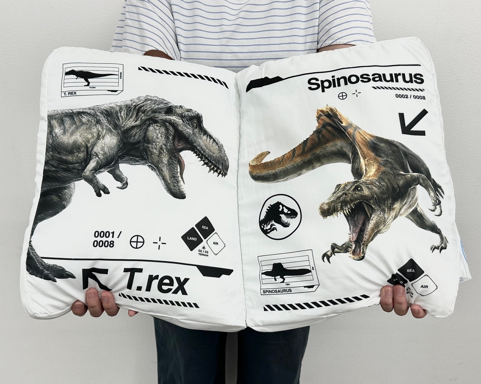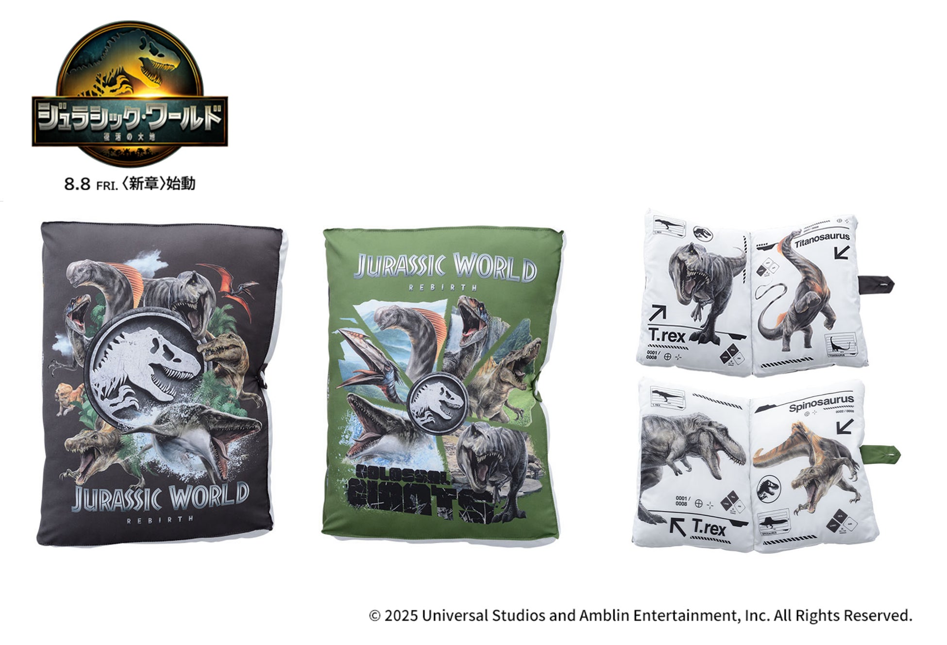 映画『ジュラシック・ワールド/復活の大地』限定プライズ!かっこいい恐竜たちがデザインされた「図鑑クッション」と「トランプ」が8月8日(金)よりモーリーファンタジー・PALOにて展開開始
