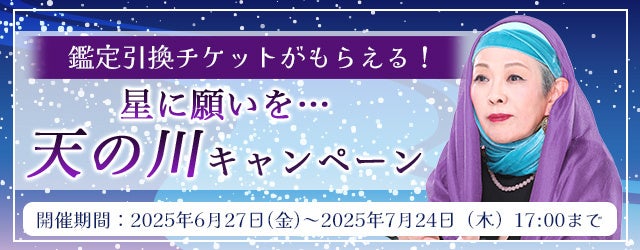そんな天の川にゆかりのある特別な日にちなみ、当サイトで「天の川キャンペーン」を開催いたします。キャンペーン期間中下記の対象鑑定を占っていただくたびに、「鑑定引換チケット」をお贈りいたします。チケット1枚につき、お好きなキャンペーン限定鑑定1つと交換することができます。
