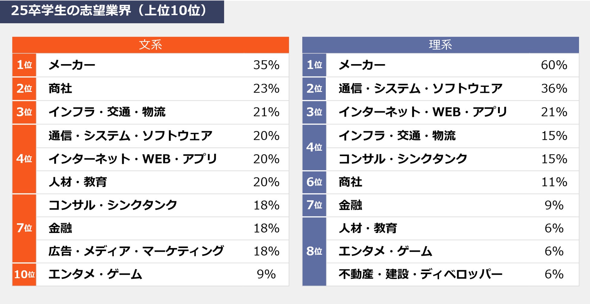 4:志望業界のトップは文理いずれも「メーカー」。理系学生の6割が希望。(図8~9)