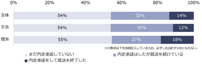 ★ 内定を得た学生のうち、3割が「内定承諾はしたが就活を続けている」と回答。理系学生のおよそ2割が、2025年1月時点で就活を終了。