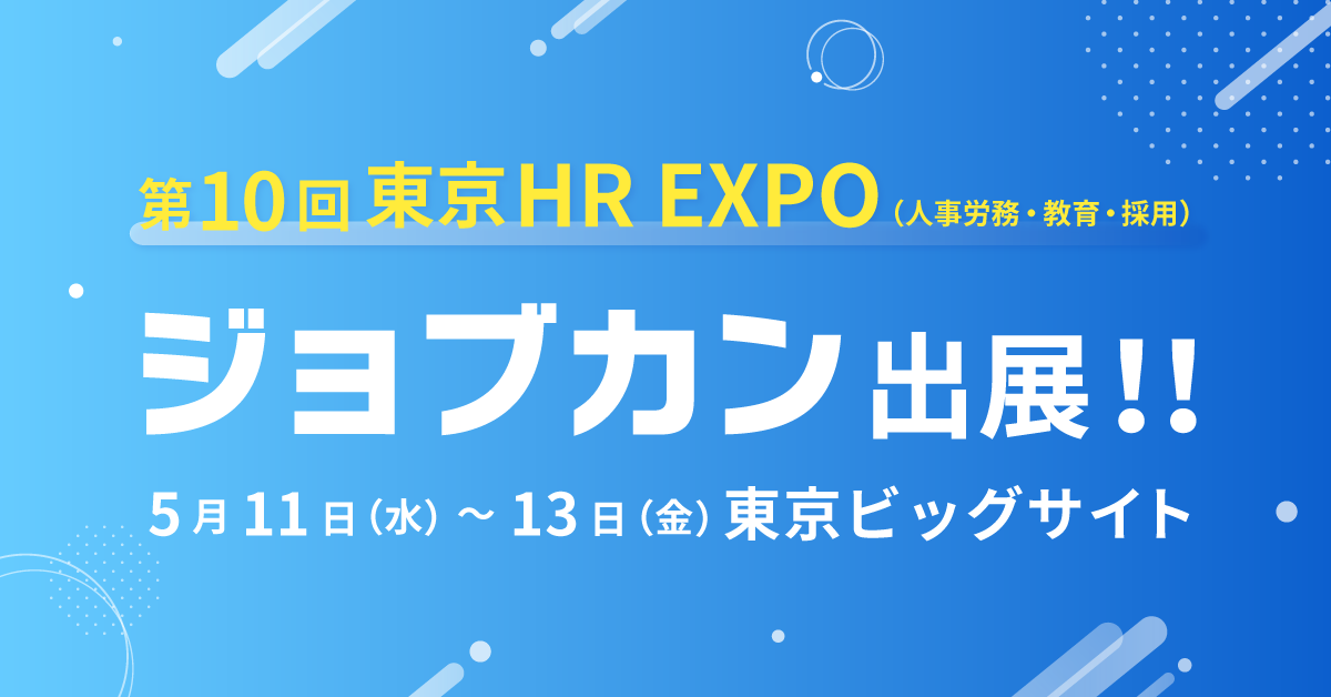 株式会社社DONUTS(東京都渋谷区、代表取締役:西村啓成)が提供するバックオフィス支援クラウドEPRシステム『ジョブカン』は、5月11日(水)~13日(金)に東京ビッグサイトで開催される「第10回 HR EXPO [春] (人事労務・教育・採用)」に出展します。