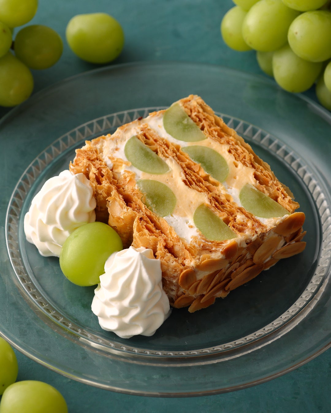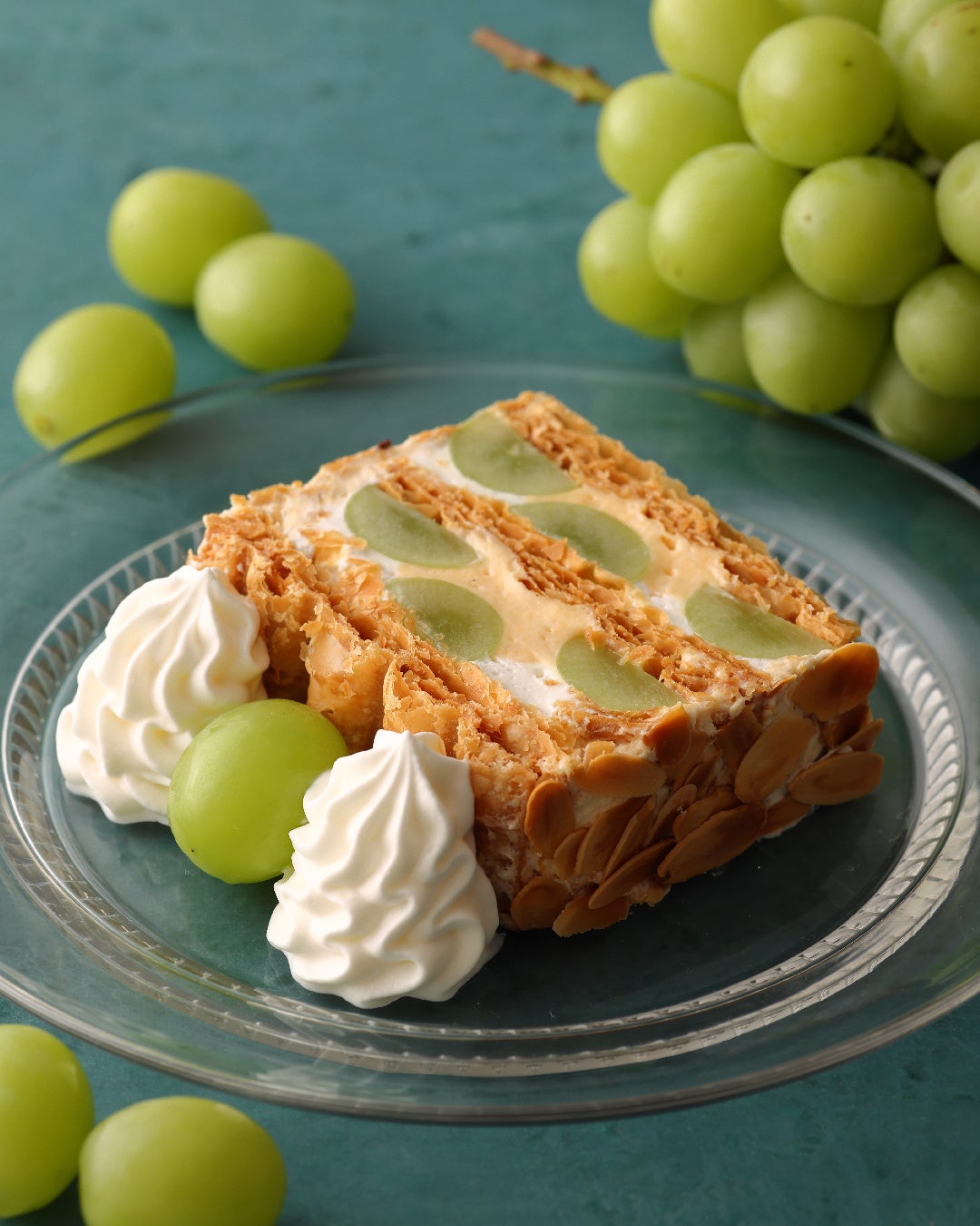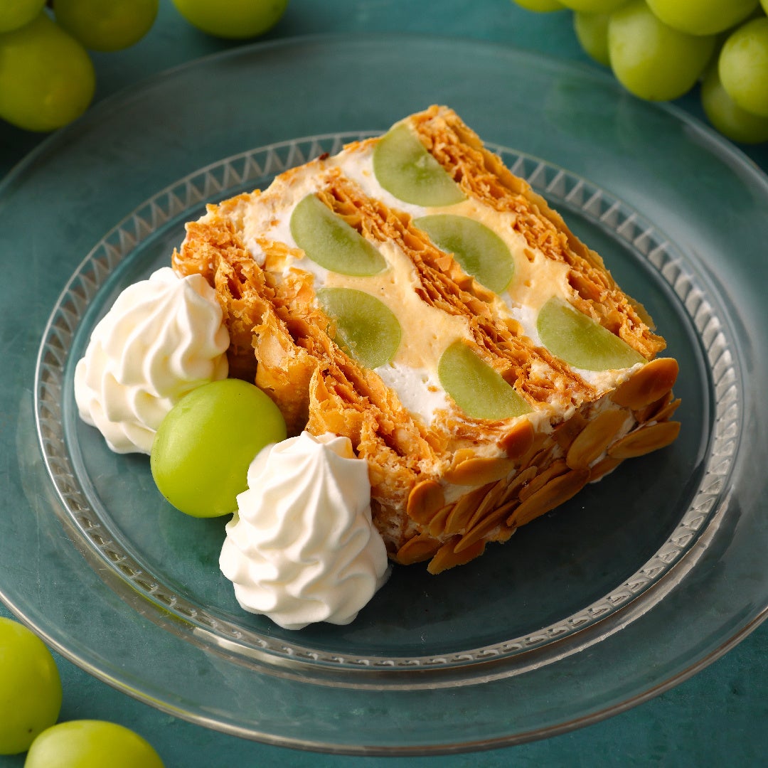 クレープとカプレーゼに代わって、キハチの定番ナポレオンパイを旬のシャインマスカットでアレンジした「KIHACHIのシャインマスカットパイ」をフルサイズで楽しめるスペシャルバージョンです。