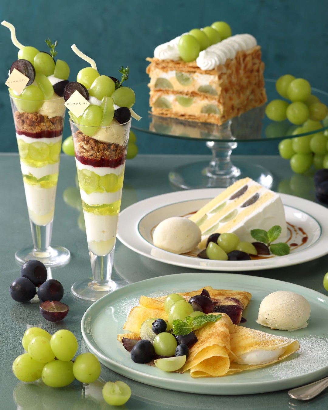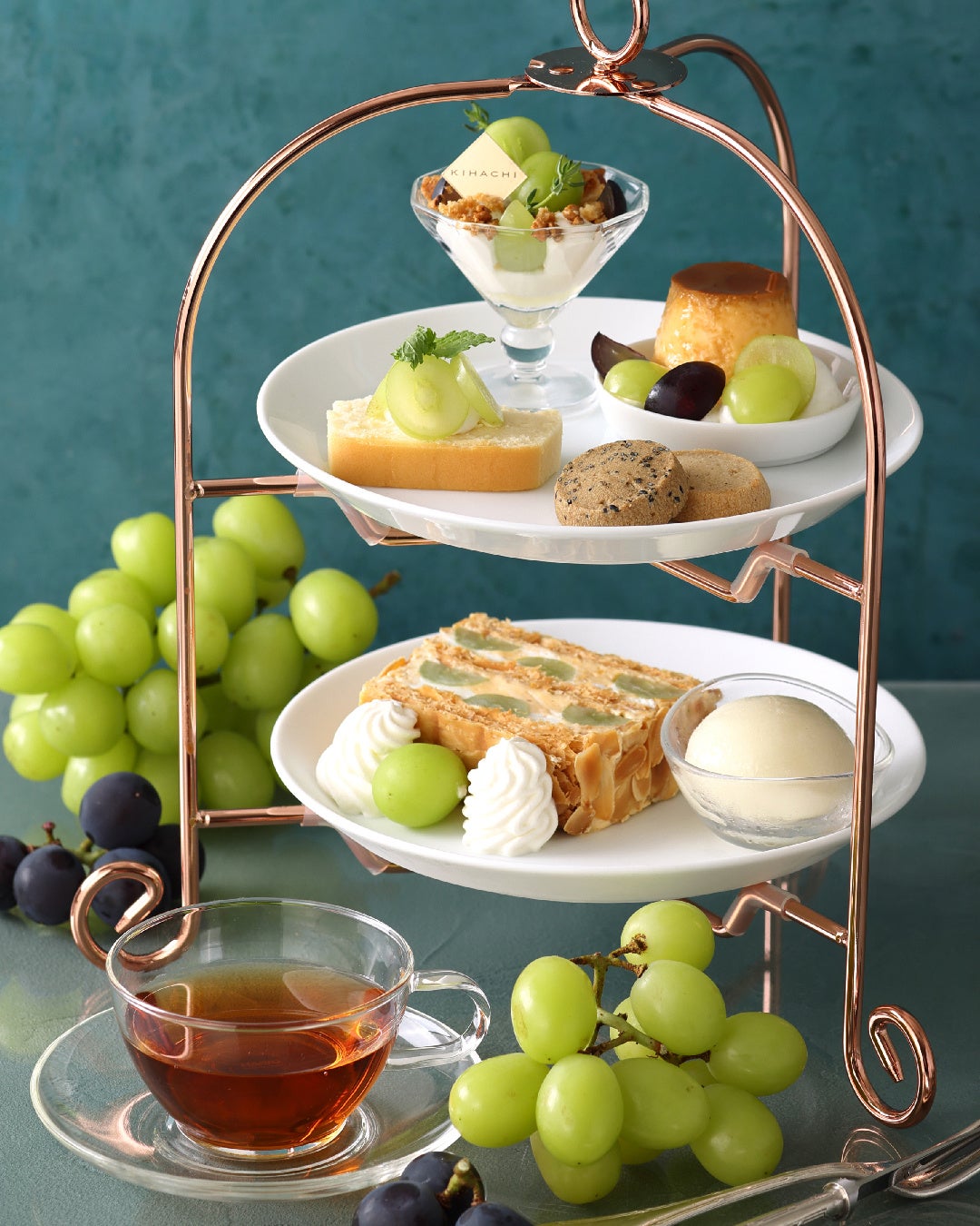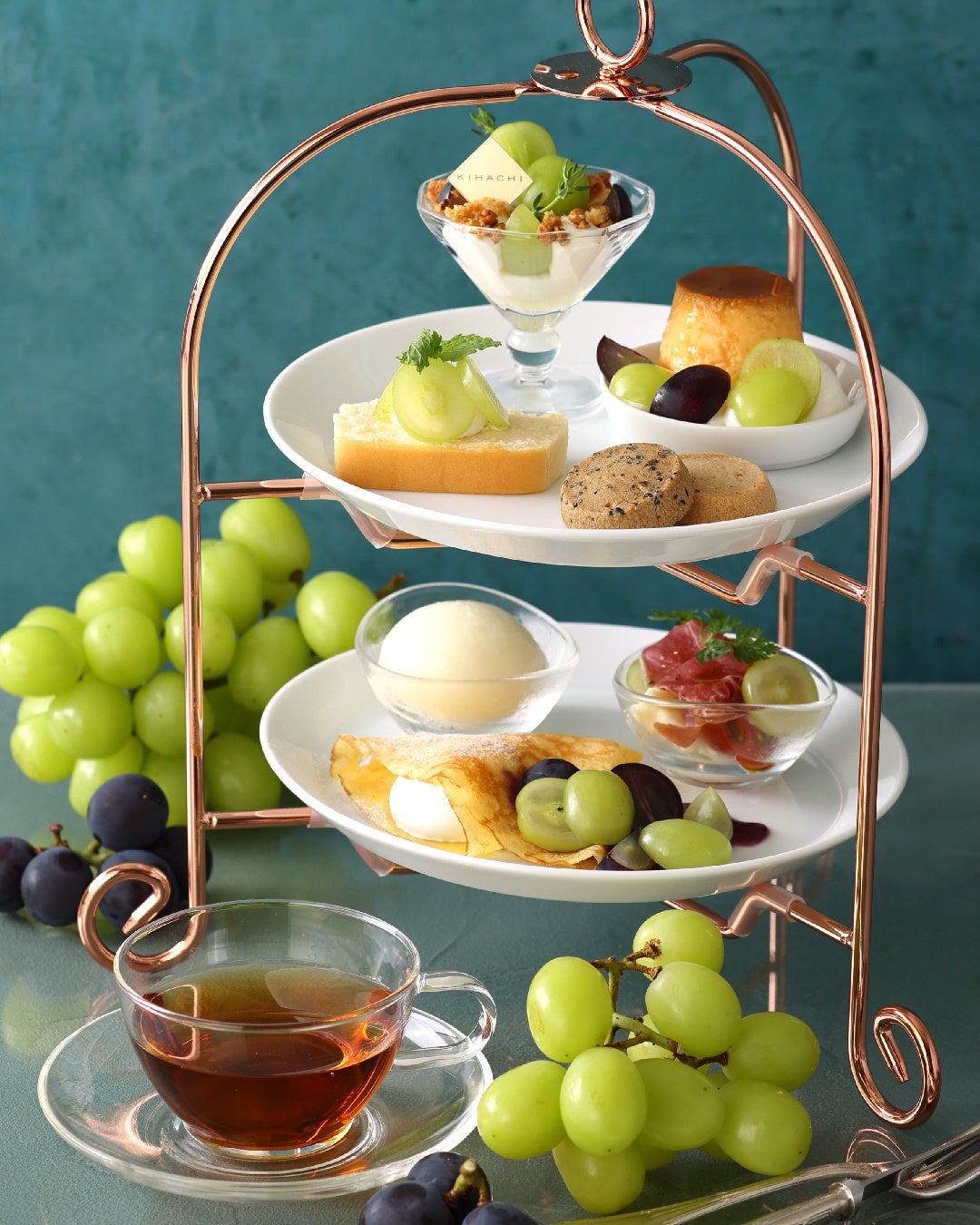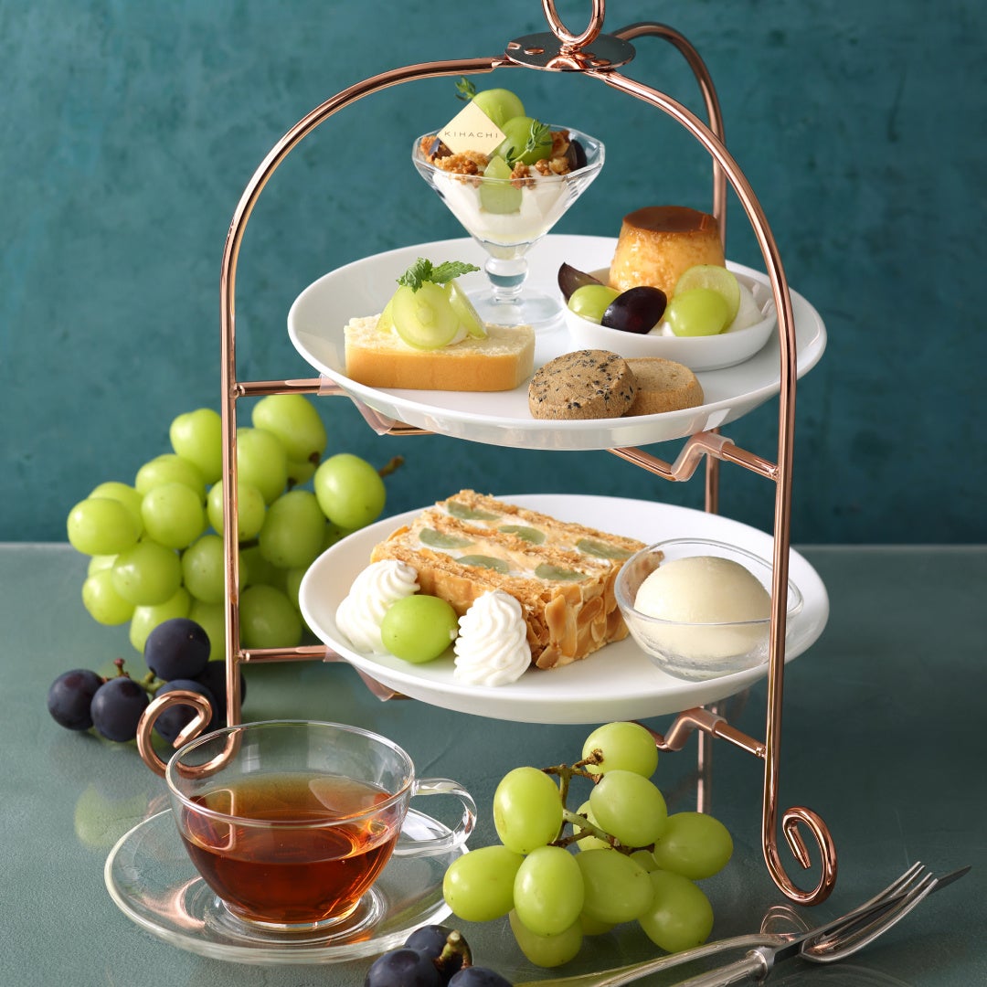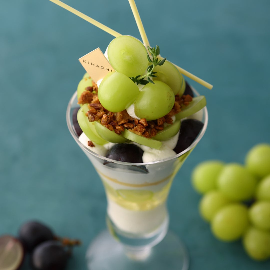 【キハチ カフェ】シャインマスカット×巨峰の新作パフェやアフタヌーンティーを楽しむ、秋限定スイーツフェアを開催