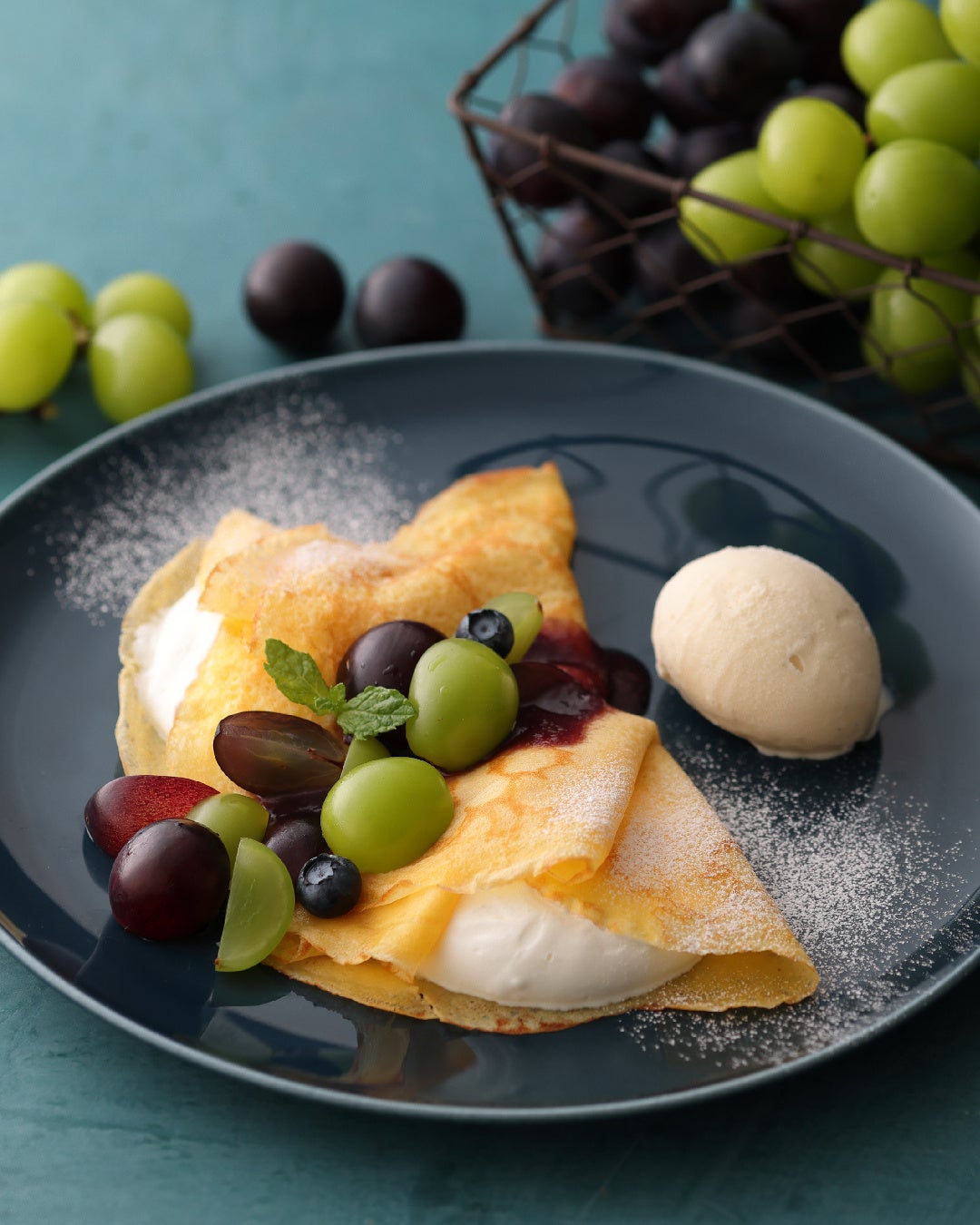■商品名:シャインマスカットと巨峰のクレープ バニラアイス添え