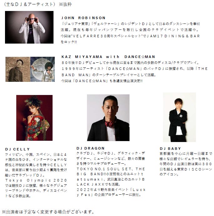 ◆新宿のニュースポット東急歌舞伎町タワー“JAM17 DINING & BAR”にて一夜限りのスーパーディスコセッション‼