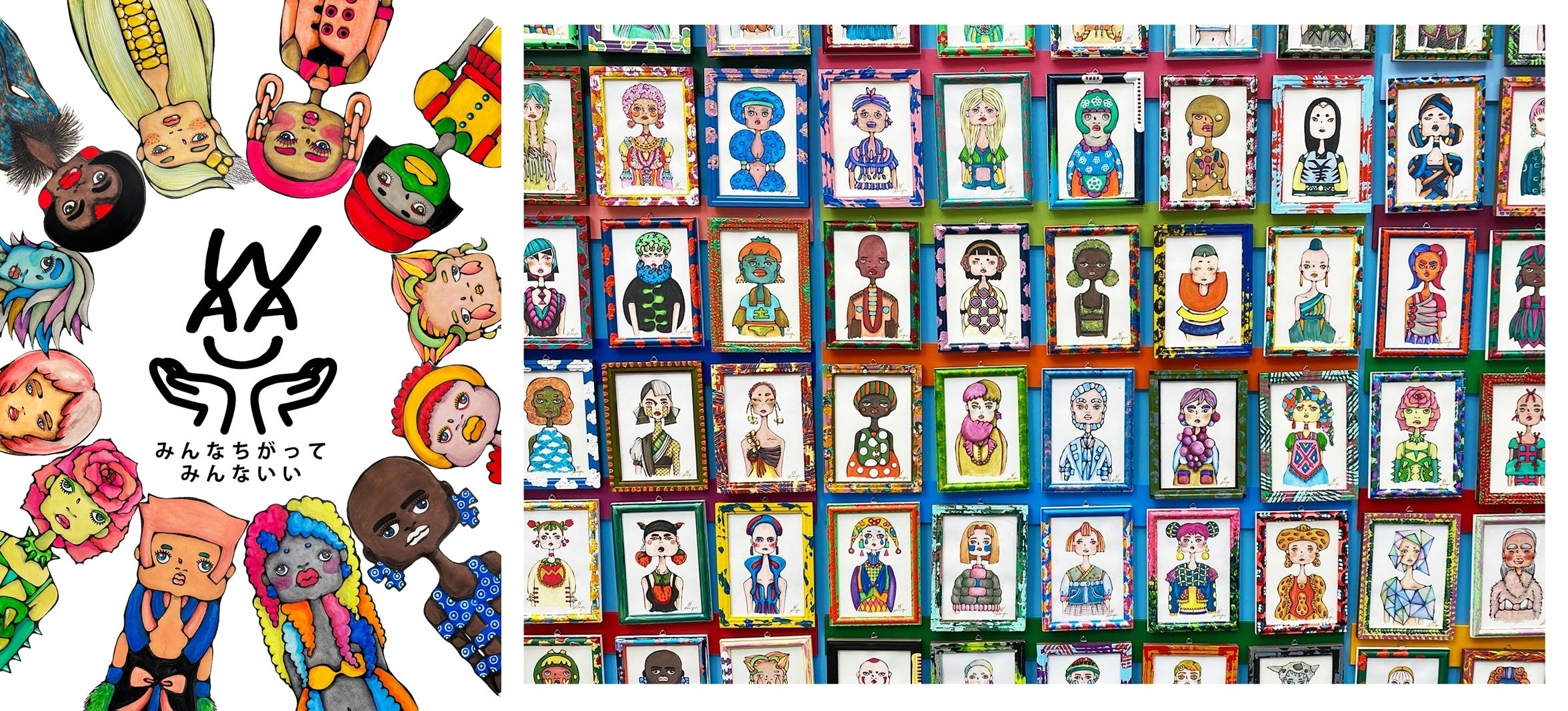 “みんなちがってみんないい”をテーマに、アーティストNATSUKI HANYUが描いた500枚以上のカラフルなイラストを中心に、ペイント額縁やバッグを販売。売上の20%は、ケニアのNGO団体「NIGEE」に寄付され、教育普及に役立てられます。