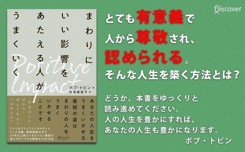 株式会社ディスカヴァー・トゥエンティワン(本社:東京都千代田区、取締役社長:谷口奈緒美)は2022年12月11日に、『ポジティブ・インパクト まわりにいい影響をあたえる人がうまくいく』(ボブ・トビン 著、矢島麻里子 訳)のオーディオブックをaudiobook.jpにて配信開始しました。
