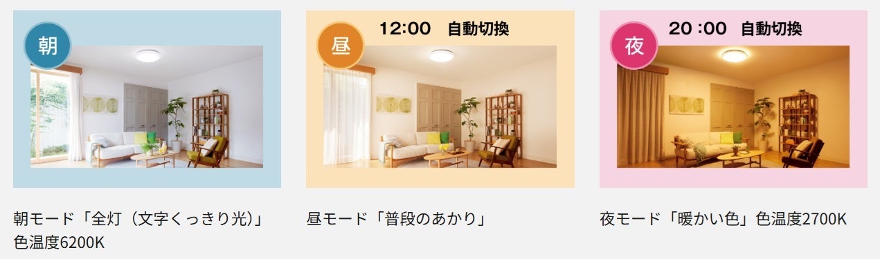 独自の新レンズ設計で光をワイドに拡散し、部屋全体を明るく照らす、パルックLED シーリングライト スタンダードシリーズ。その中でも高効率タイプは省エネ性に優れています。さらに、設定した時間に適した明るさ・光色のあかりに自動で変化させることができる「おまかせモード」を搭載。シーンに応じたあかり環境で過ごせるのはもちろん、必要以上に明るくし続けることもなくなり節電効果も期待できます。