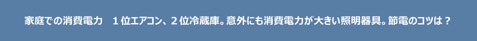 今回の調査結果から、節電を意識するあまり寒い冬場でもエアコンの使用を控え、多少部屋が暗くても照明をつけずに生活するなど、家電の使用を我慢する人が多いことが分かりました。中でもエアコン、冷蔵庫、照明器具は家庭内の消費電力の約5割を占めることから、電気代を削減するにはまずはこの3つの節電を心掛けることが必要です。