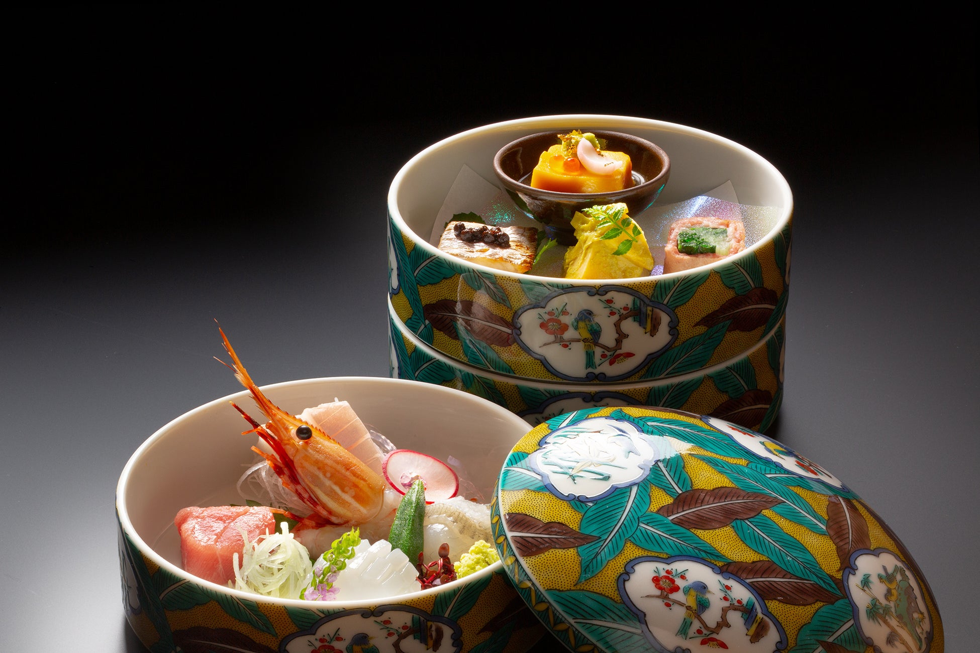 ノドグロや甘海老、ズワイ蟹、輪島ふぐ、ブリなどの新鮮な海幸、五郎島金時芋や金時草などの加賀野菜は、お造りや郷土料理、揚げたて天婦羅など、会席料理でお召し上がりいただけます。夕食時のドリンクはアルコール含むフリーフロー。