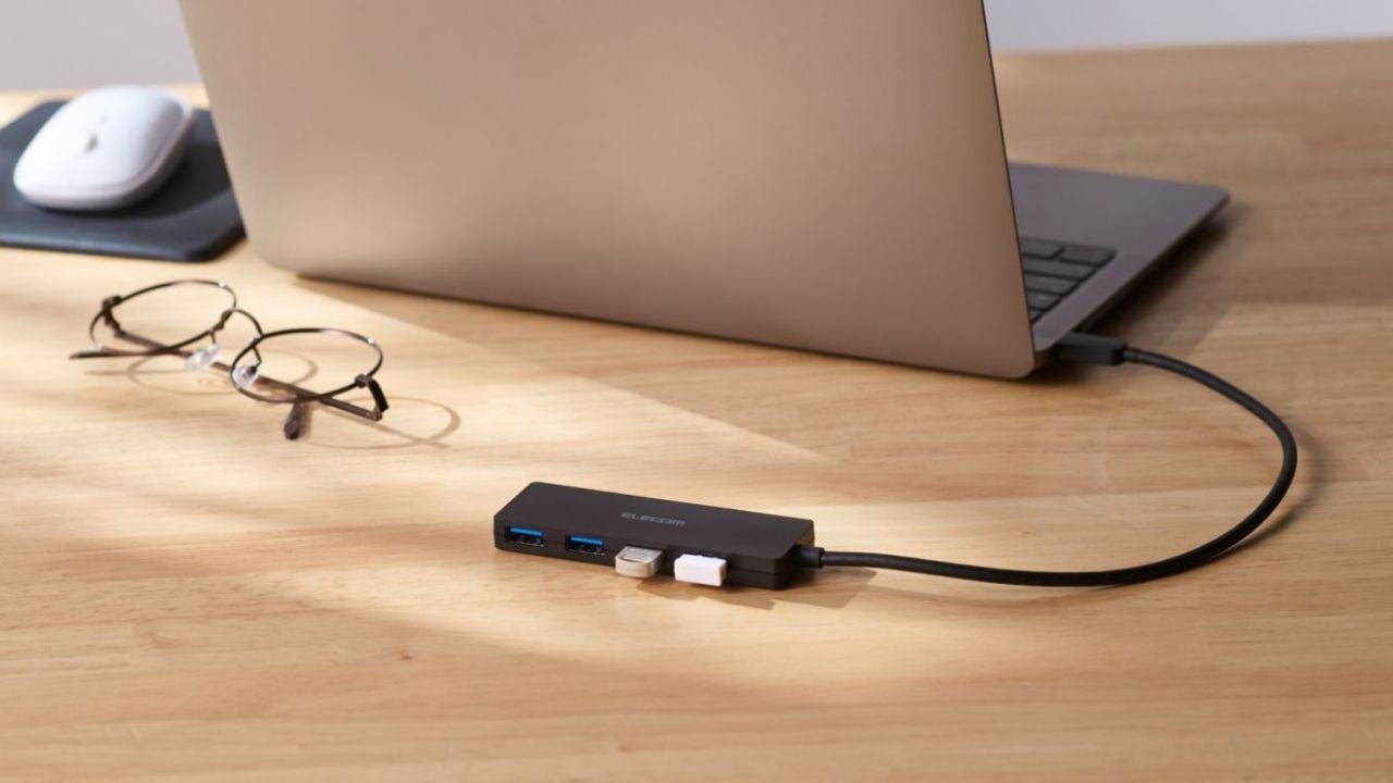 マウスやUSBメモリーなどを1台にまとめて接続できる!USB-Aポートを4つ搭載した薄型USBハブ