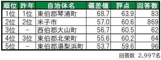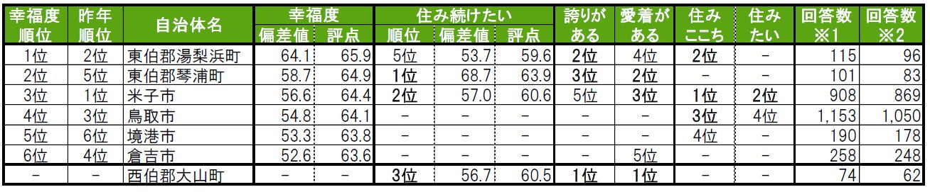 ○「街の幸福度」でも上位の東伯郡琴浦町が2年連続1位