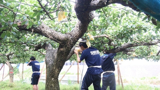 新潟市南区との農業体験教育「AGRIREX(アグリレックス)」ール レクチエの袋かけ