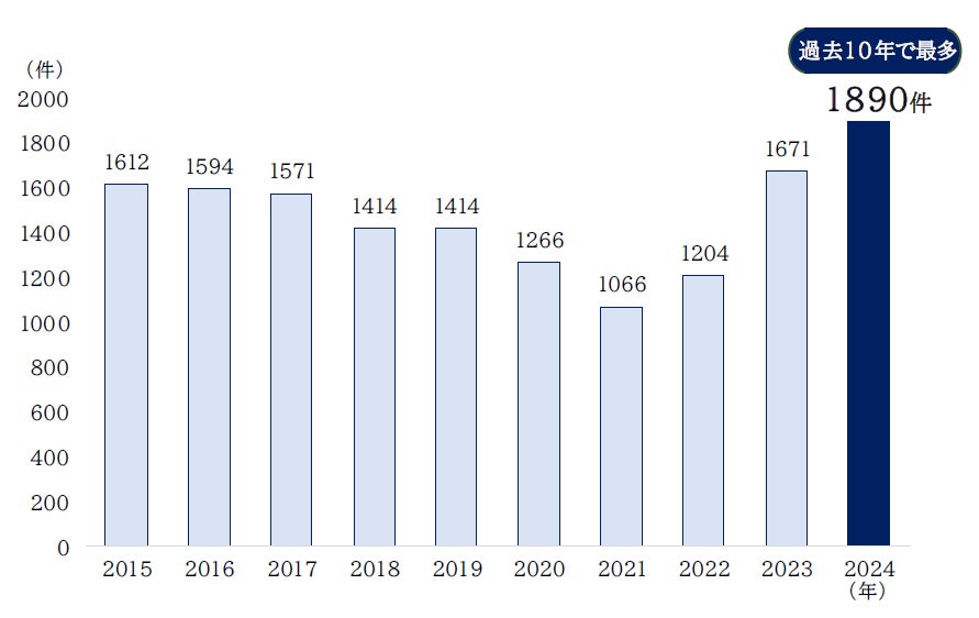 2024年に発生した「建設業」の倒産は、1890件にのぼり、過去10年で最多となった。小規模事業者が大半を占めており、木材をはじめとした建築資材価格の高止まりに加え、建設現場での「職人不足」と人材の維持・確保に伴う人件費の高騰によって事業の継続を断念するケースが目立った。