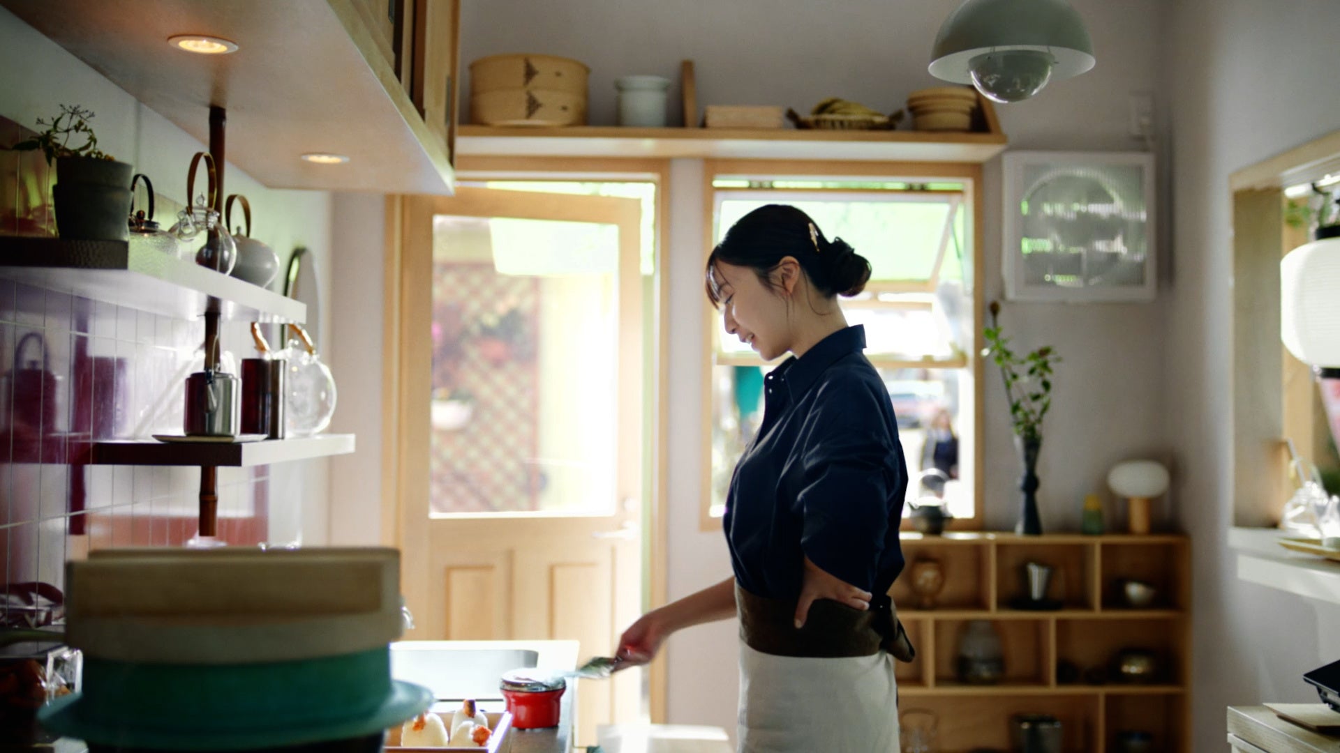 舞台は、地元の人々に親しまれるとある町の「綾鷹屋」。おにぎりと「綾鷹」を提供する、お店の店主として上白石さんが登場します。羽釜で炊いたツヤツヤのお米と、こんがりと油ののった焼き鮭で作ったおにぎり。美味しそうな香りにつられた近所のお米屋さんに、まるで“淹れたて一杯目”のような豊かなうまみと軽やかな後味の「綾鷹」を、おにぎりと一緒に上白石さんが提供。「綾鷹屋」に訪れたお米屋さんが恍惚の表情を浮かべ、おにぎりと「綾鷹」の組み合わせを楽しみながら味わう様子が描かれています。