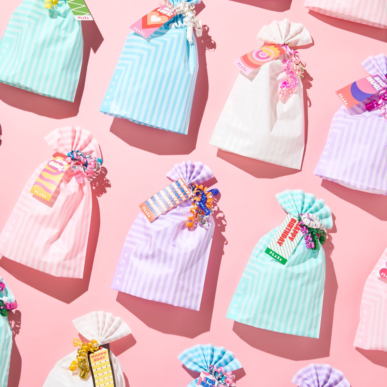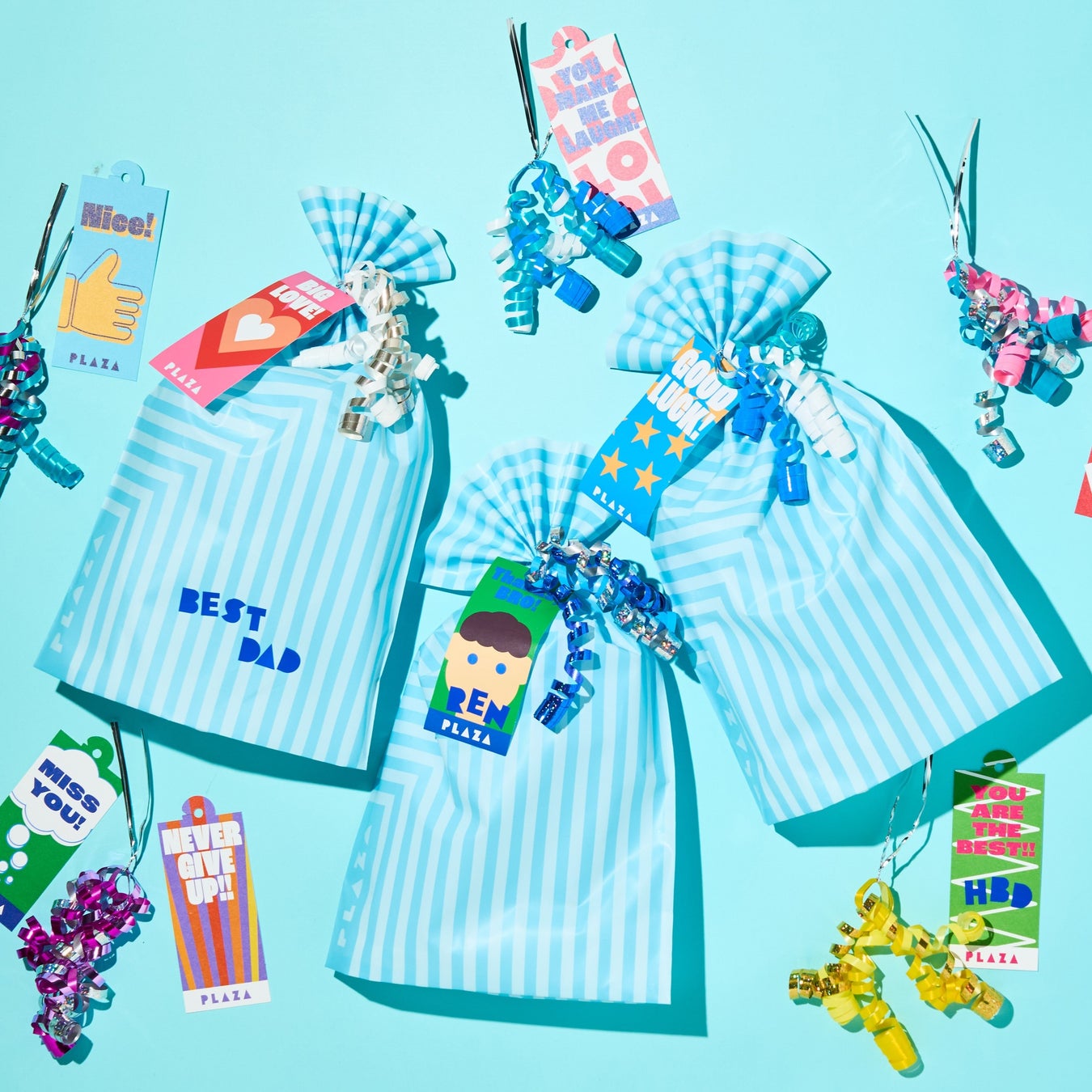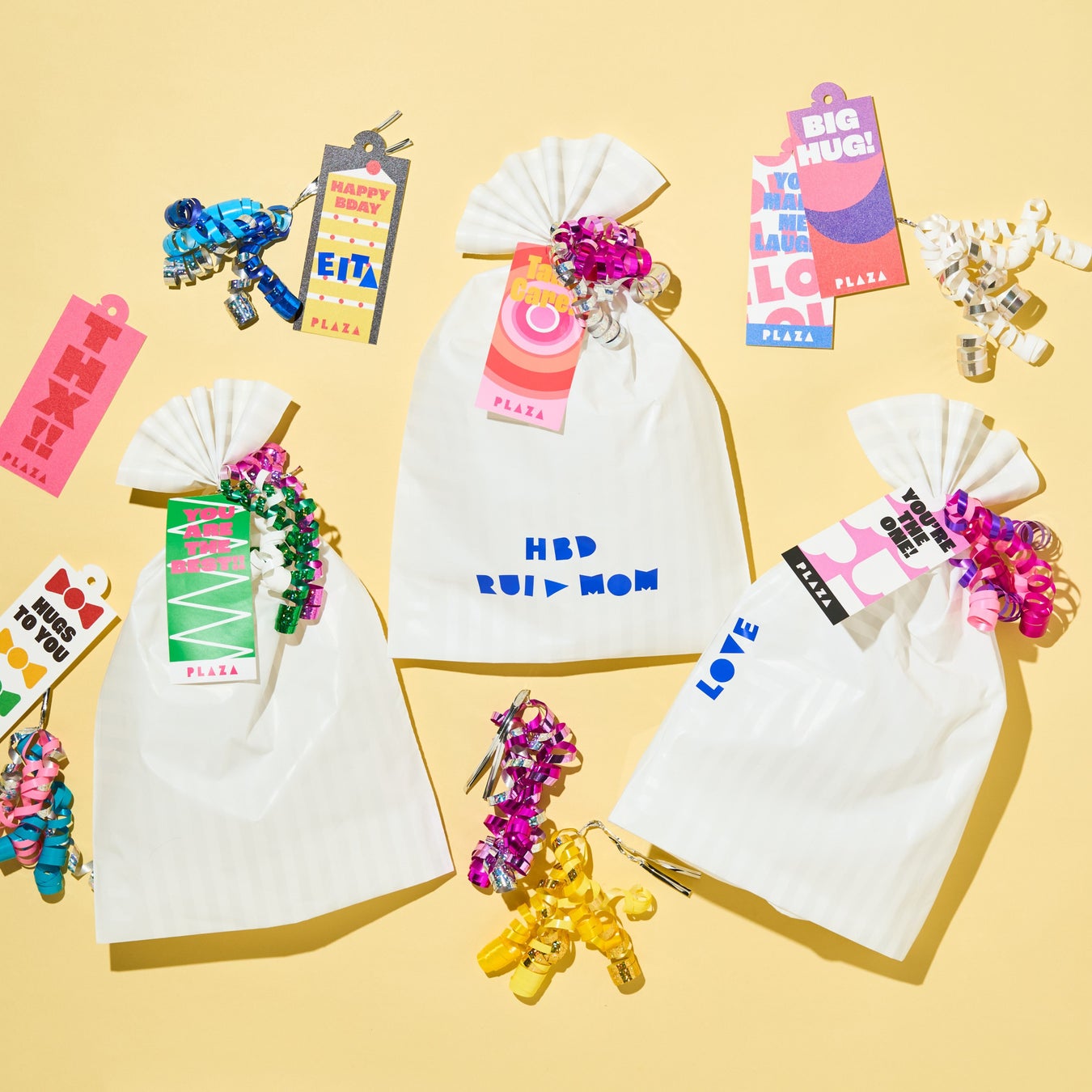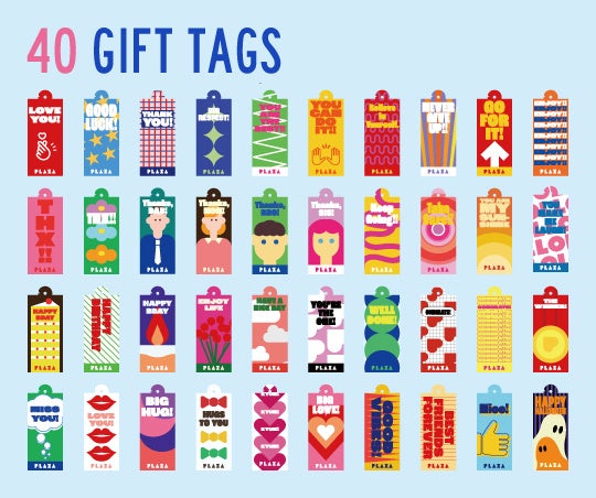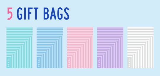 「WRAPLAZA」ではバッグタイプとボックスタイプのラッピングをご用意。バッグタイプは、通常PLAZAで無料提供しているギフトバッグ(1カラー)とカールリボン(2カラー)を含む、[5カラーのギフトバッグ/12種のカールリボン/約40デザインのギフトタグ]から、そして、ボックスタイプは[4サイズのギフトボックス/60デザインのメッセージステッカー]からお選びいただけます。その組み合わせ数はなんと2,640通り!豊富な選択肢の中から、お好みのラッピングをお楽しみいただけます。