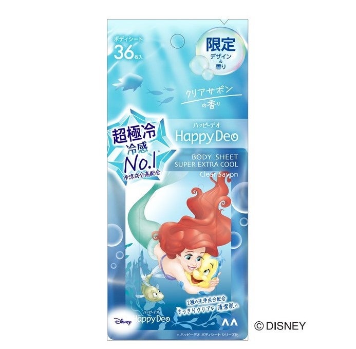 株式会社マンダム(本社:大阪市 社長執行役員:西村健 以下マンダム)は、使うときや持ち歩くときにもハッピーな気分になれるエチケットシリーズ「マンダム ハッピーデオ ボディシート」より、ディズニーキャラクターのアリエルをデザインしたシリーズ史上No.1※1冷感の「超極冷 クリアサボン」を2025年4月14日(月)より数量限定で発売します。