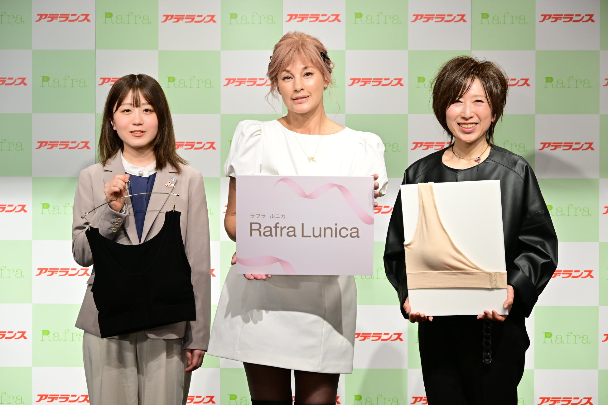 毛髪・美容・健康・医療のウェルネス事業をグローバル展開する株式会社アデランス(本社:東京都品川区、代表取締役社長 鈴木 洋昌)は、2026年2月19日(木)にインナーブランド 「Rafra Lunica(ラフラ ルニカ)」新商品発表会を明治記念館で開催し、2月23日(月)から販売を開始するインナー『片胸用ブラ』(梅宮アンナさんと共同開発)と『前開きブラ』について発表しました。イベントには共同開発者である梅宮アンナさんをお迎えし、新インナーに込めた想いを語っていただきました。