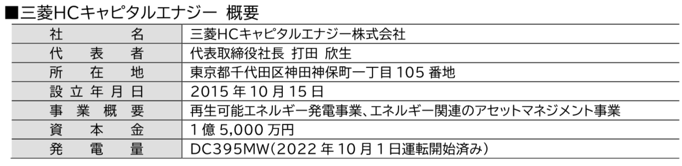 エナジー社は、再生可能エネルギー発電所の開発やその管理、運用を手掛けており、全国にて70カ所、DC395MWの運転開始済み太陽光発電所を保有しています*3。再生可能エネルギーに関する専門性、事業投資に必要となる金融に関する知見、これまでの実績・経験をベースとした事業ノウハウ、さらには、三菱HCキャピタルグループの強固な顧客基盤といった強みを生かし、FIT制度を活用した太陽光発電事業やPPA事業などを展開しています。今回の東京メトロとの連携においては、発電所の開発、保有、管理、運用、非化石証書の移転を担います。