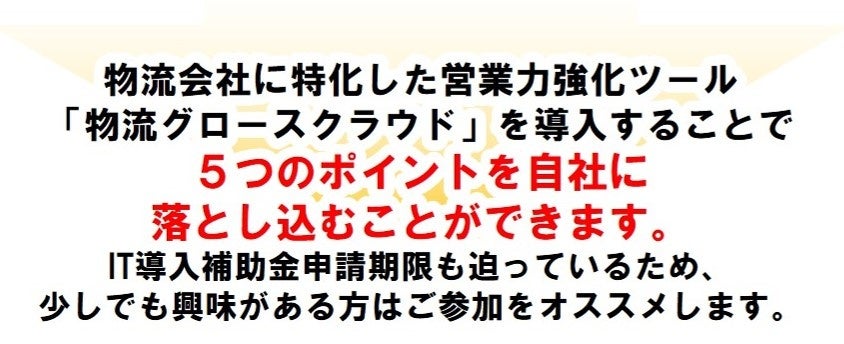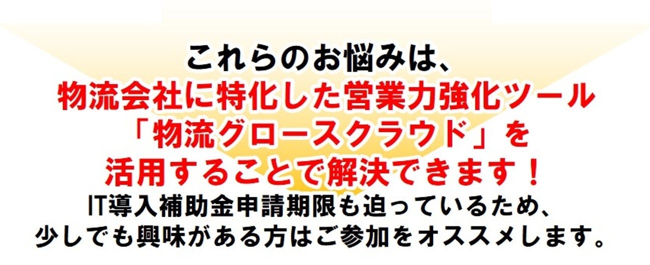 日本最大級の物流コンサルティングファーム 船井総研ロジ株式会社(本社:東京都中央区、代表:橋本直行、以下「船井総研ロジ」)は、2025年5月9日(金)13:00~14:00、 運送会社・物流会社の経営者を対象にした「【IT導入補助金対象】運賃交渉の成功率を上げる営業DXツール説明会」をオンラインで開催いたします。