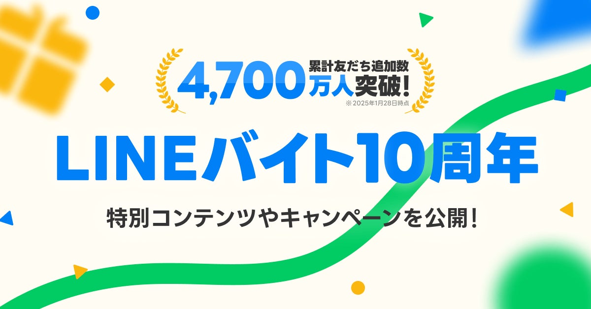 LINEヤフー株式会社(以下、LINEヤフー)は、アルバイト求人サービス「LINEバイト」が10周年を迎えたことを記念して、本日「LINEバイト」10周年特設サイトを開設し、特別コンテンツを公開したことをお知らせします。また、ユーザーへのこれまでの感謝の気持ちを込めて、LINEスタンプのプレゼントを実施中です。