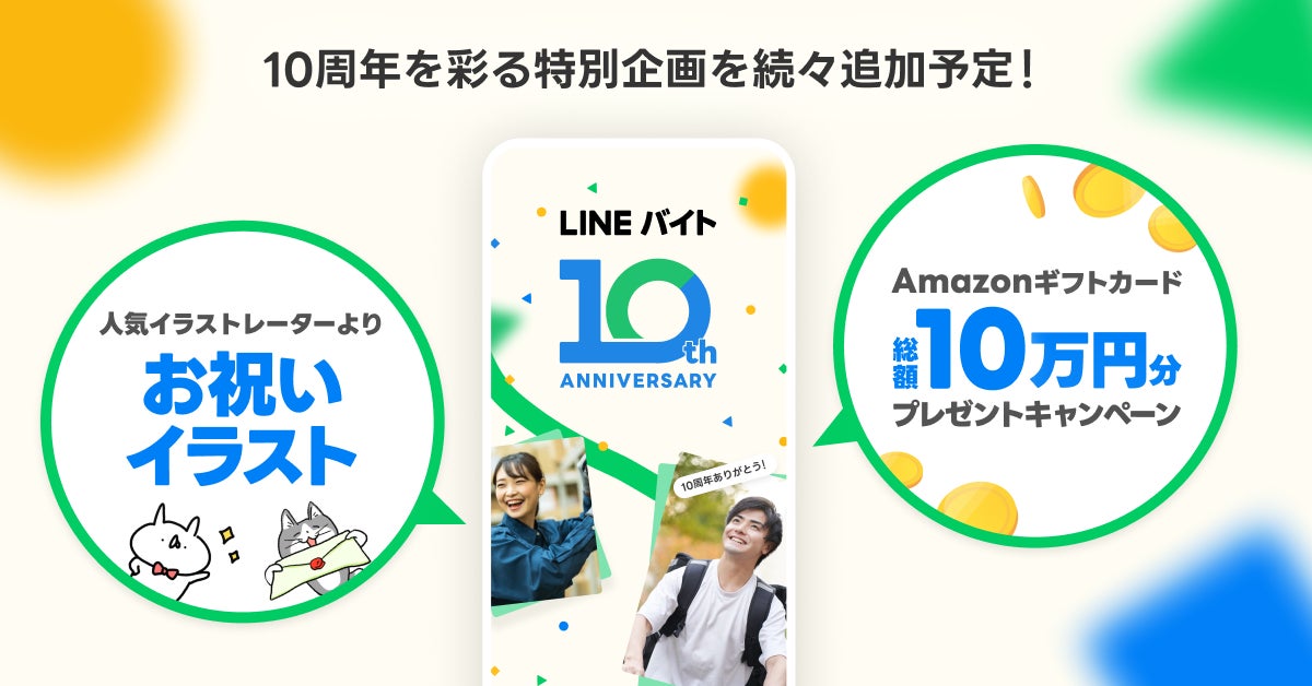 【LINEバイト】10周年を迎えたことを記念して特設サイトを開設 「お祝いイラスト」や「10年のあゆみ」など特別コンテンツを公開