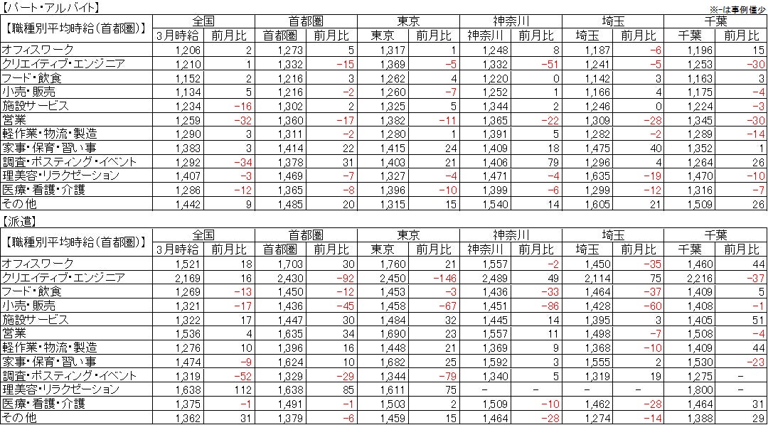 上昇した一因として、時給相場の高い「オフィスワーク」(1,521円)「クリエイティブ・エンジニア」(2,169円)等の3カテゴリで平均時給が過去最高を更新し、求人数も増えたことが考えられます。