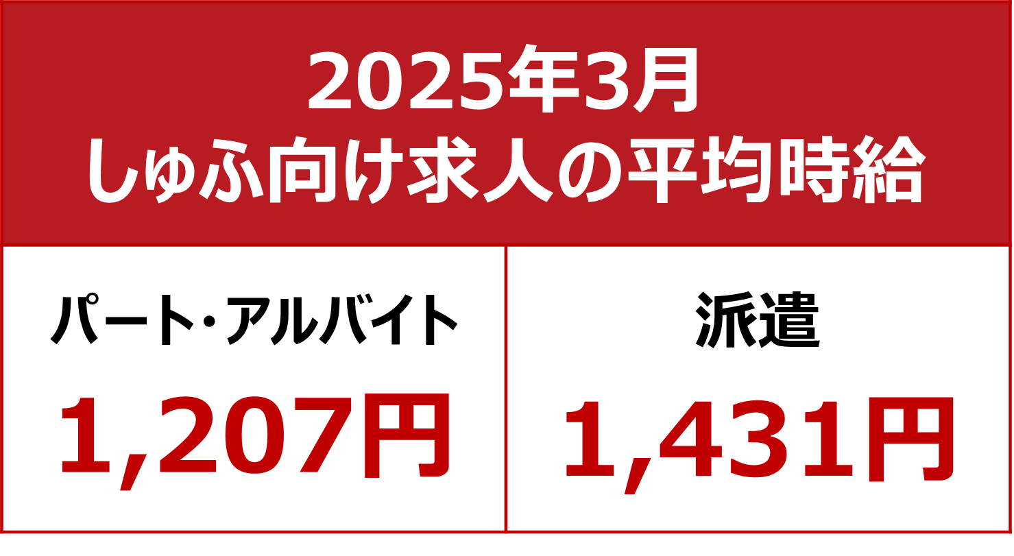 【2025年3月しゅふ求人の平均時給】パート・アルバイト:『1,207円』、派遣:『1,431円』/パート「飲食系」平均時給過去最高を更新!