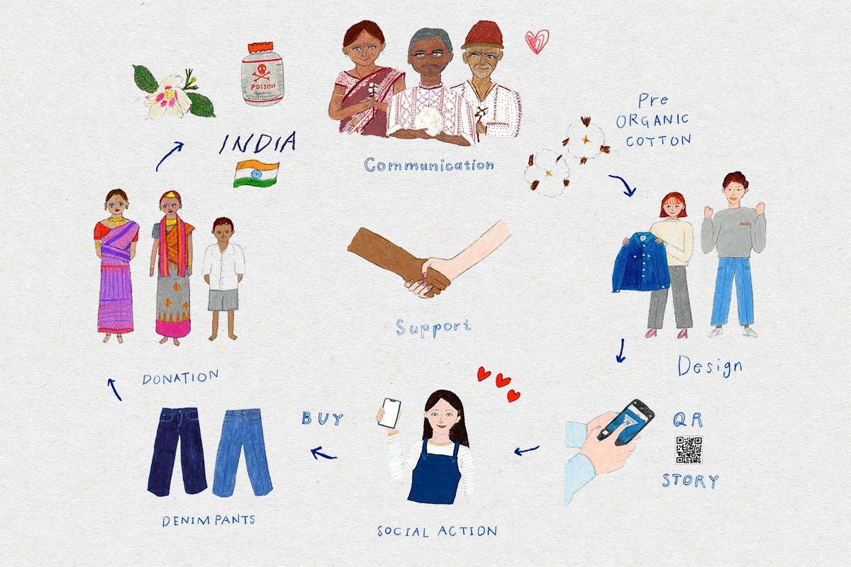 インドの特定の小規模コットン生産者よりプレオーガニックコットンを購入し、オーガニック移行を支援するプログラム「Grow Organic(グローオーガニック)」。