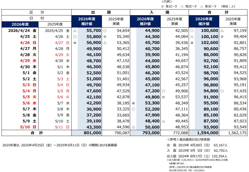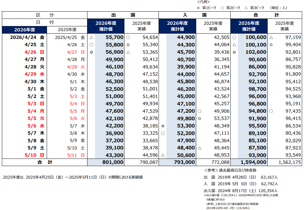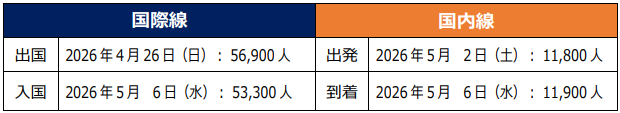 2026年度 ゴールデンウィーク期間 国際線旅客推計値