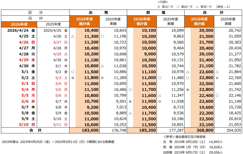2026年度 ゴールデンウィーク期間 国内線旅客推計値