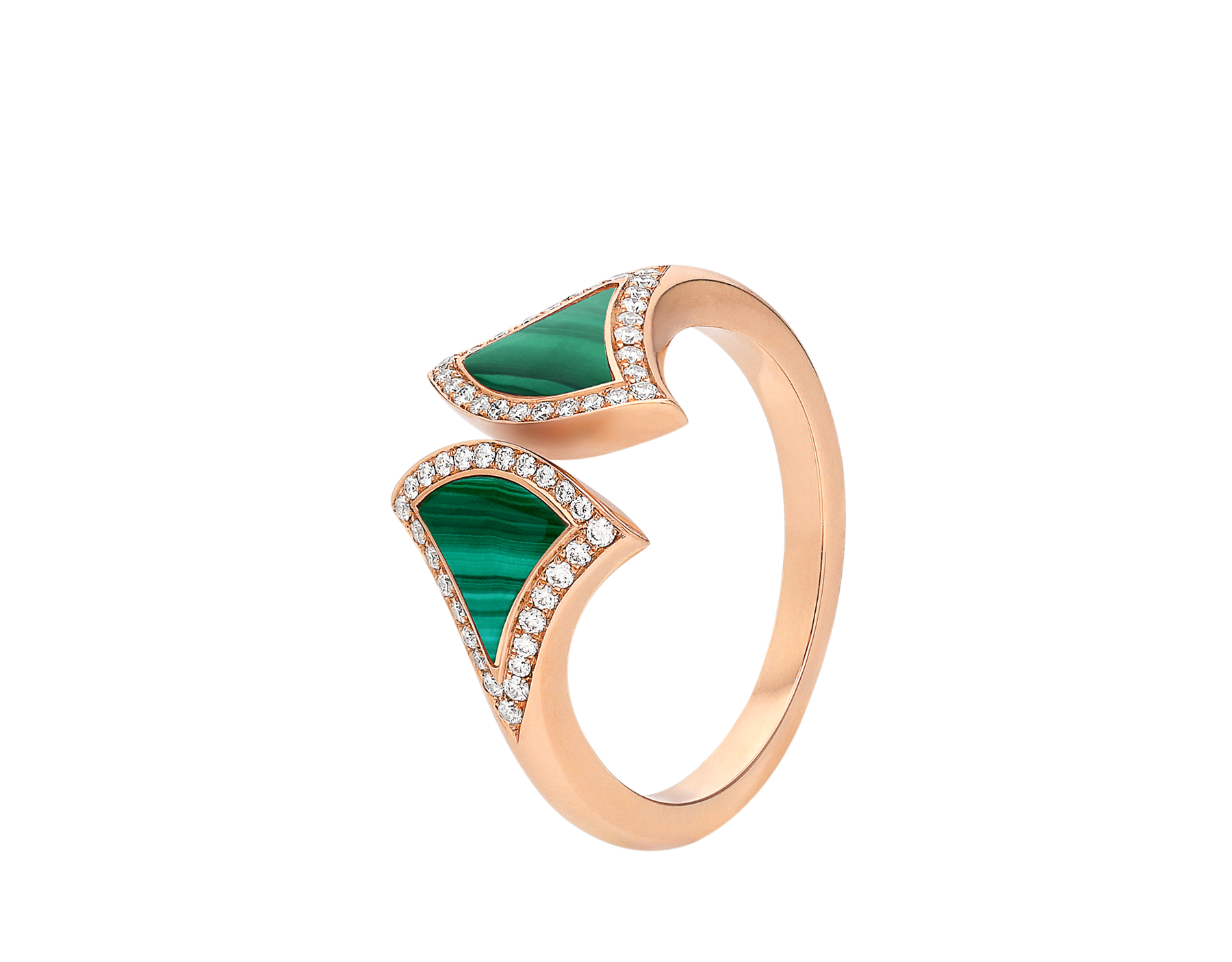 繊細な雰囲気を高めるマザー オブ パールとカリスマ性のあるマラカイトの2種類で展開する2022年の新作は、18Kのピンクゴールドにパヴェダイヤモンドをあしらい、オープンワークの扇型のモチーフが彩る洗練されたネックレス、魅力的なリング、万能なスタッドイヤリング、優美なブレスレットが揃います。