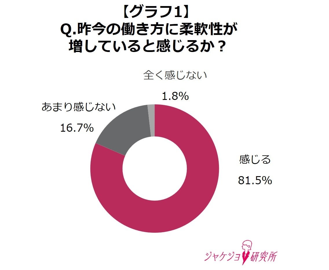 調査では、働く女性の約8割(81.5%)が「働き方の柔軟性が増した」と感じていることが判明。
