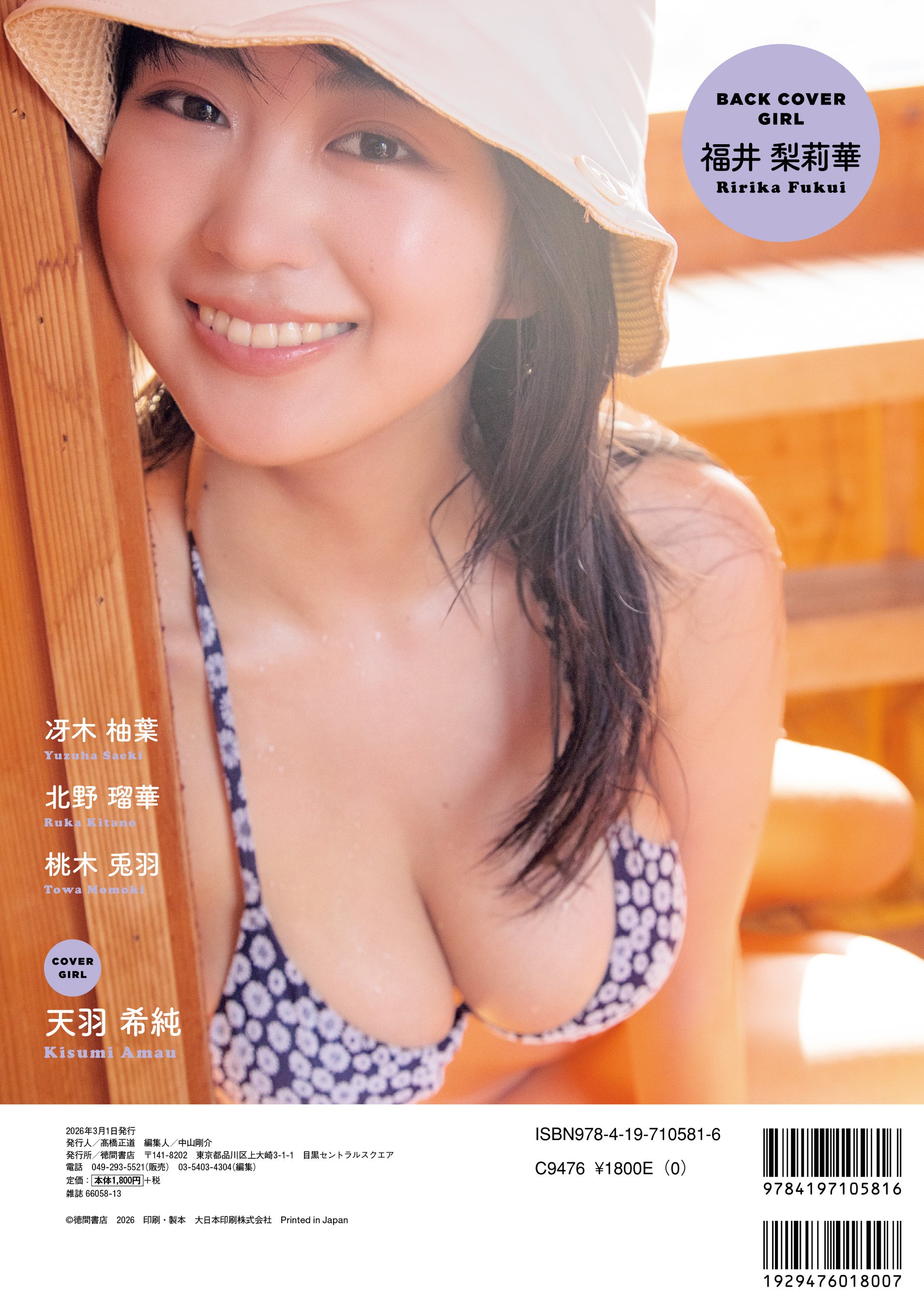 表紙は実際にサウナを体験しながらの撮影だっただけに、頬を赤く染める天羽希純のセクシー&キュートな姿を収めた1枚。また、グラビアでは、雑誌のコンセプトである“火照る・見つめる・好きになる”を体現してくれた。大のサウナ好きと語る本人の“汗だくな水着姿”も必見。