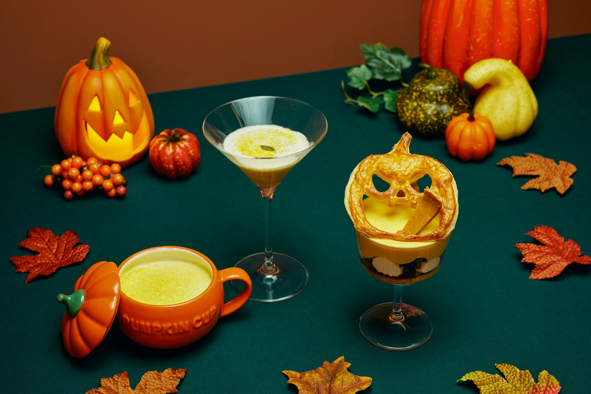 アメリカのダイナーを思わせるデザインの「Cafeteria」にて、秋の収穫祭にちなんだかぼちゃ尽くしのスイーツとドリンクを提供します。アメリカで秋の収穫を祝う際の定番スイーツといえば、シナモンやグローブなどのスパイスが効いたクラシックパンプキンパイ。1955 東京ベイでは、クラシックパンプキンパイをサンデーにアレンジした「パンプキンパイサンデー」を提供します。パンプキンパイのベースとスパイスが効いたキャラメルジュレ、バニラアイス、ジャック・オ・ランタン型のパイなどを合わせた、見た目も食感も楽しい一品です。ドリンクはラム酒をベースにかぼちゃとショコラリキュールを合わせた「パンプキンクリームショコラ」や、ミルクティーにかぼちゃのペーストを合わせ、スパイスを効かせた「パンプキンスパイスティー」を提供します。かぼちゃ尽くしのスイーツとドリンクで、味覚でも秋の収穫祭を満喫できます。