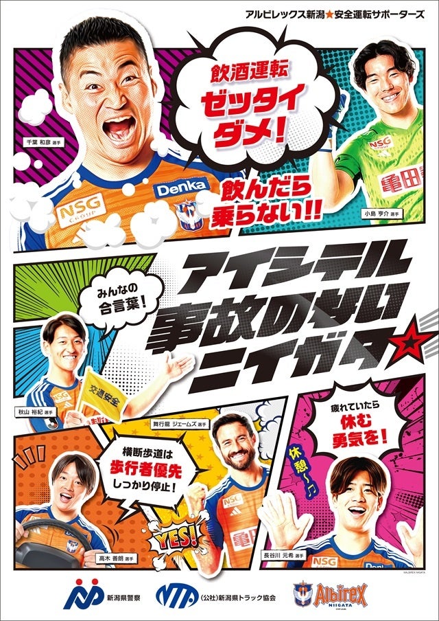 新潟県警察本部と連携して実施する「アイシテル事故のないニイガタ。」をキャッチフレーズとした交通事故防止の啓発活動と、公益社団法人新潟県トラック協会による飲酒運転根絶事業の一環として、「飲酒運転根絶」をはじめ、「横断歩道の歩行者優先」「疲労運転防止」をドライバーに対して呼びかけるポスターを制作いたしましたので、お知らせいたします。