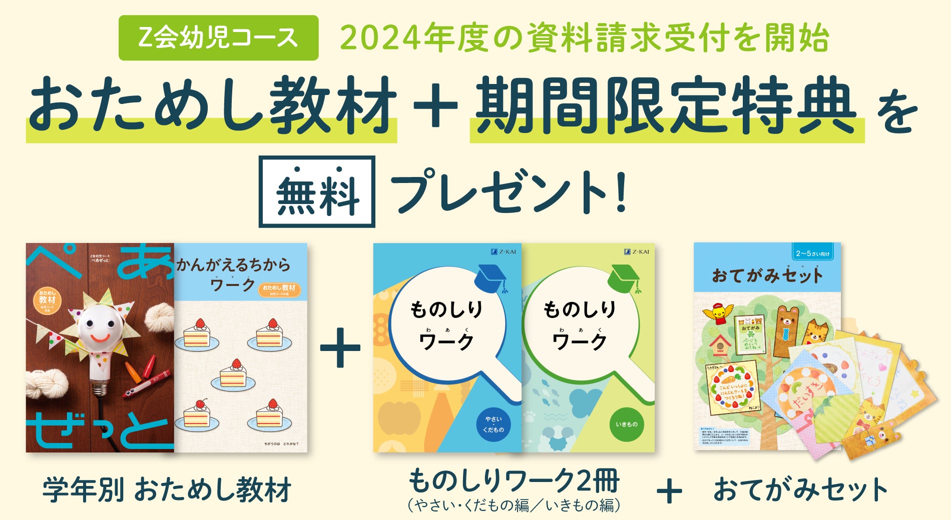 【Z会の通信教育】2024年度幼児コースの資料受付を開始 身近な題材で興味関心を広げるワーク2冊を無料プレゼント