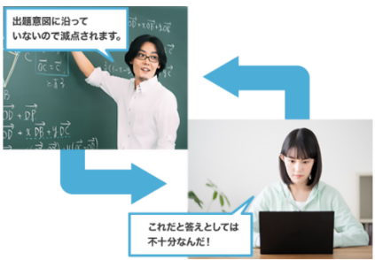 授業では記述答案の加点・減点の理由を掘り下げ、一人では学びにくい"記述問題"の答案作成力を磨きます。様々なパターンの答案を題材にするので、思考の幅が広がり、多くのアプローチ法を自分のものにできるようにしていきます。